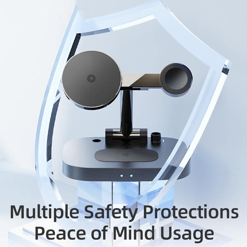 • Simultaneous charging for four devices: phone, watch, earbuds, and stylus