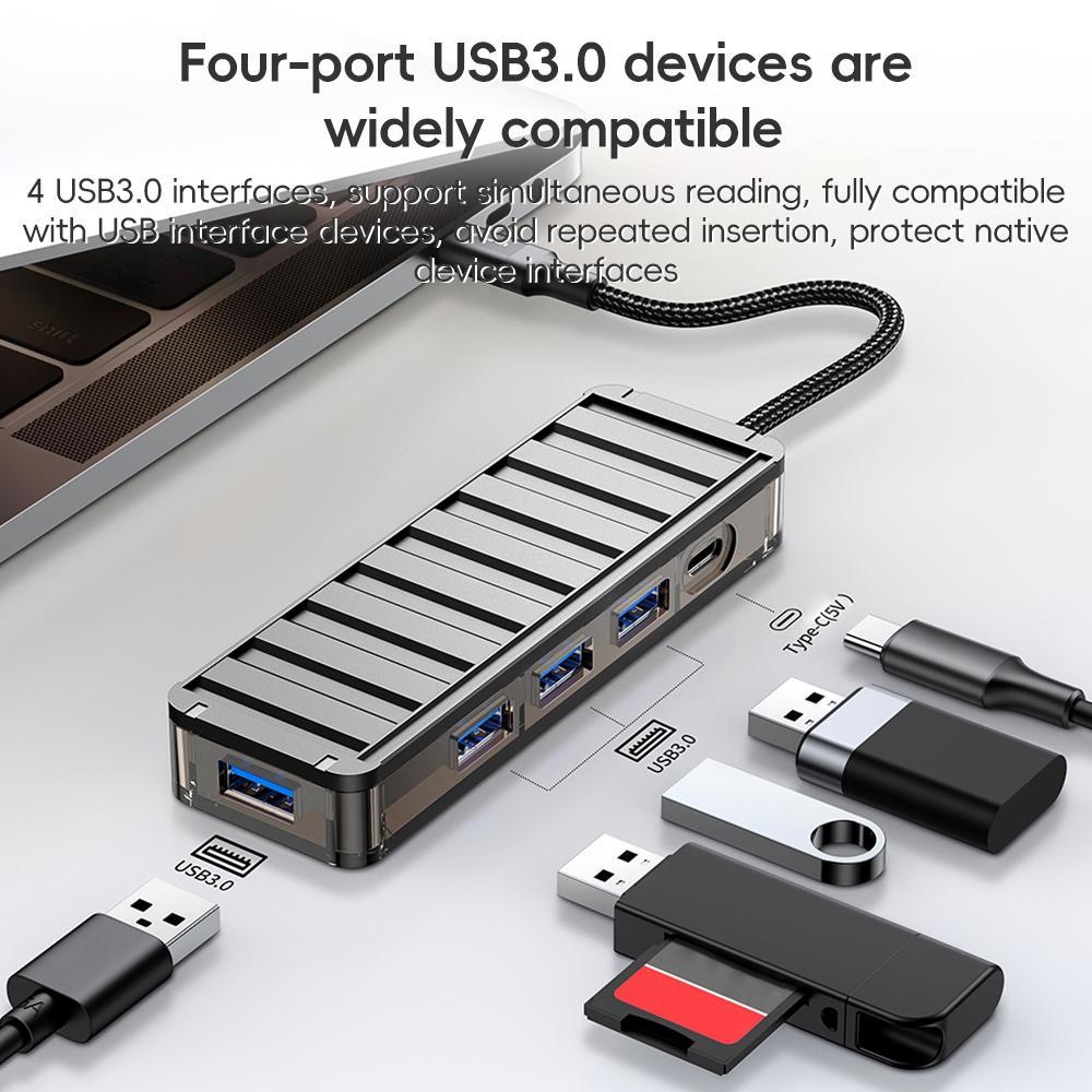 4-In-1 Type-C To Usb 3.0 Hub Adapter Grey