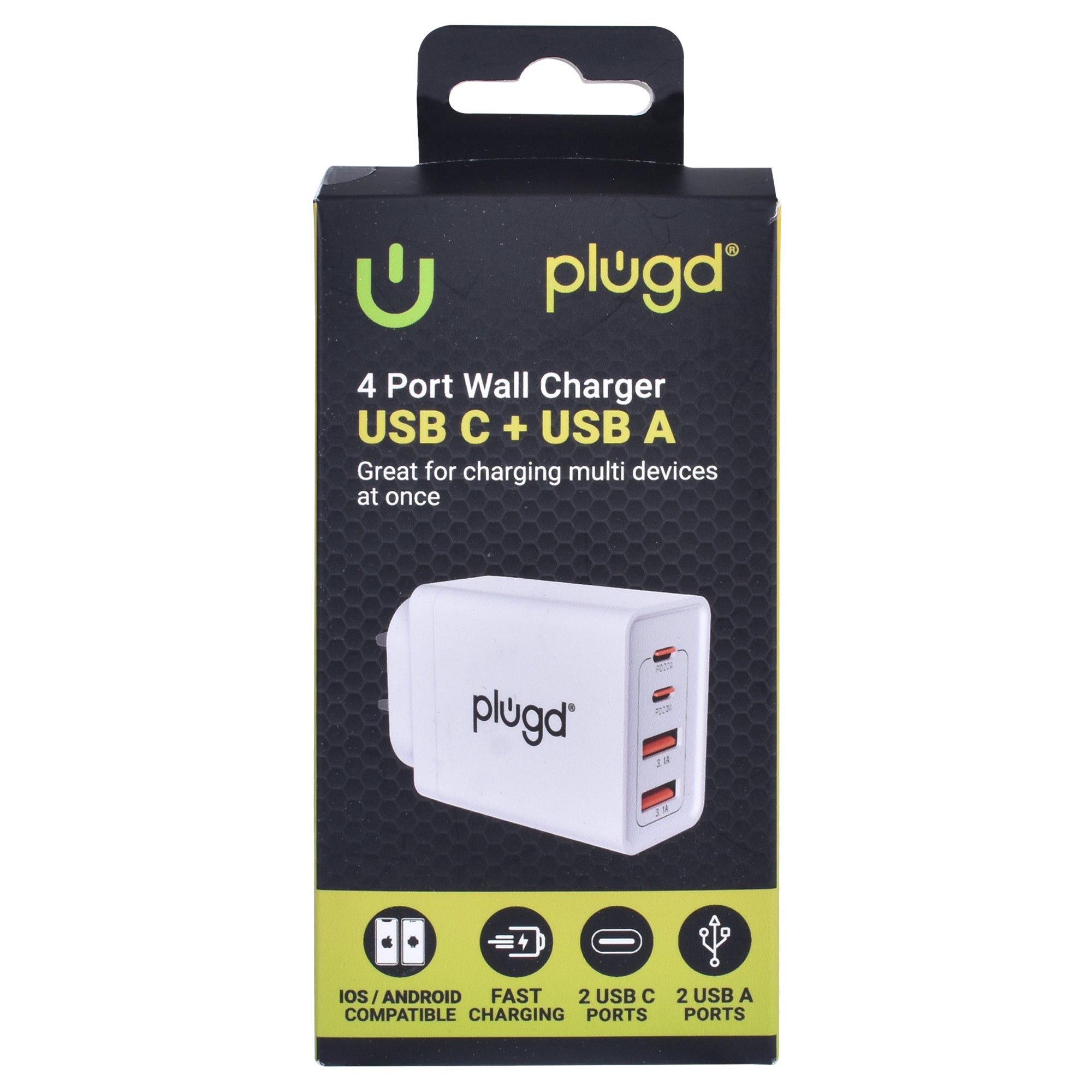 4 PORT WALL CHARGER USB C+USB A