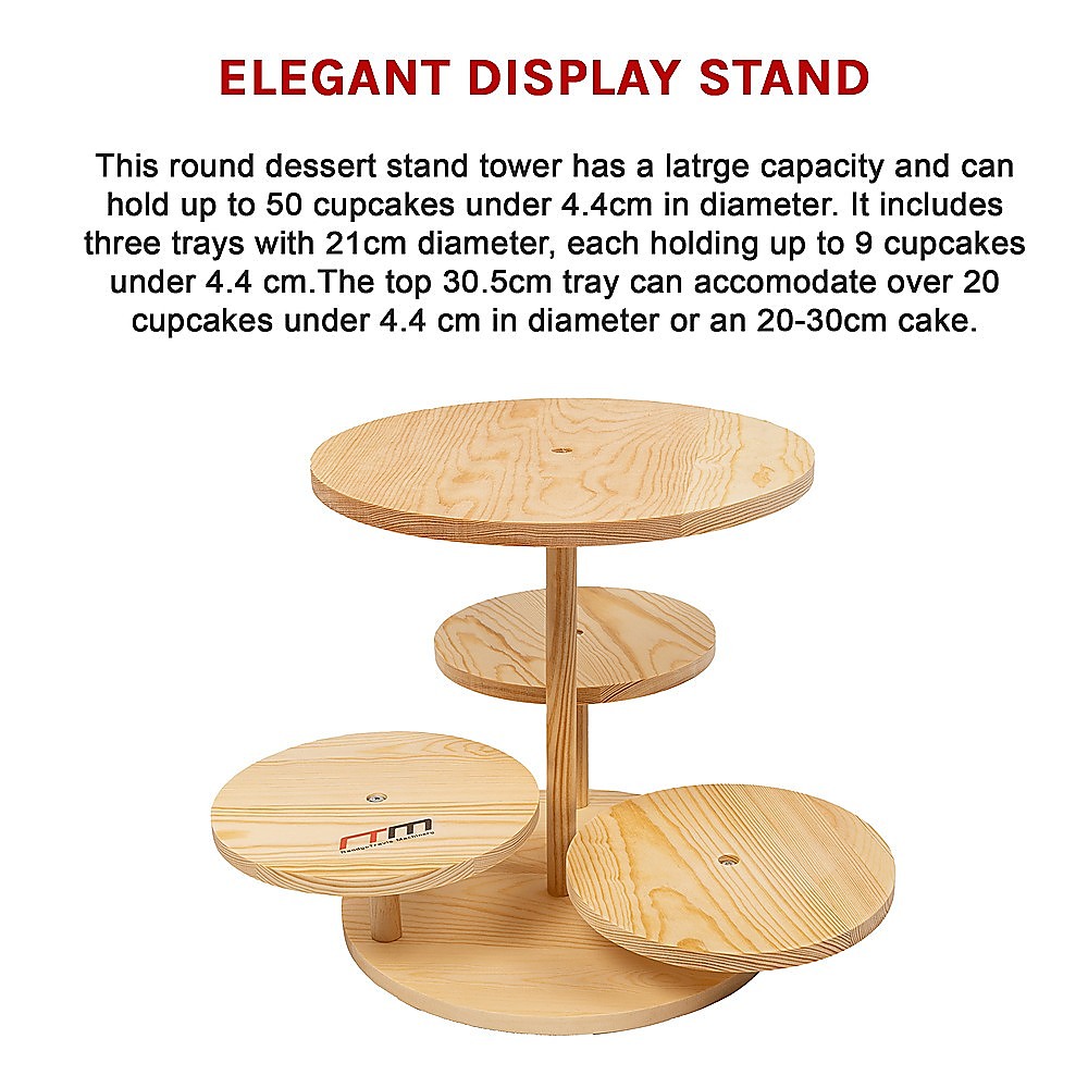 Elevate your dessert presentation with the 4 Tier Round Dessert Stand Tower Cake Cupcake Display by Randy Travis Machinery. Crafted from rustic brown acacia wood, this elegant display stand adds a touch of natural charm to any event or gathering.Perfect for showcasing cupcakes, cakes, pastries, and other sweet treats in style!