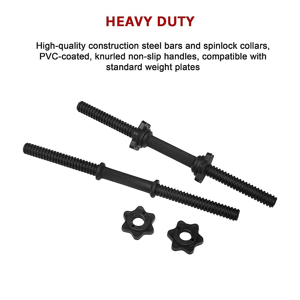 Use these dumbbell bars with standard weight plates with 26.5mm standard hole diameter. They come with two spin-lock collars to fasten the plates in place for ease of lifting. The handles have slip-resistant indentations for better stability and grip.