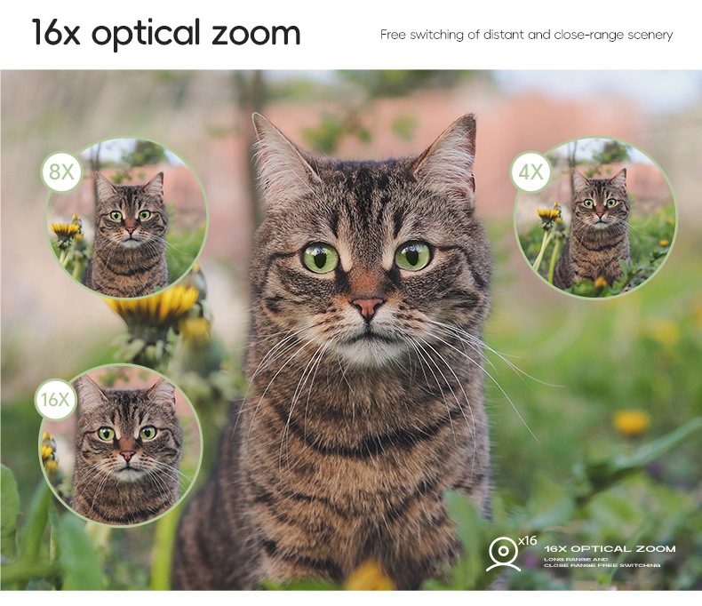 - 16x Powerful Digital Zoom: Get closer to your subjects with the 16x zoom capability.