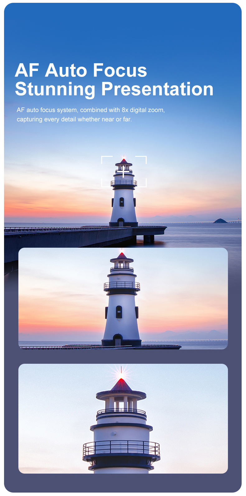- AF Auto Focus: Autofocus system ensures sharp images, even with zoom.