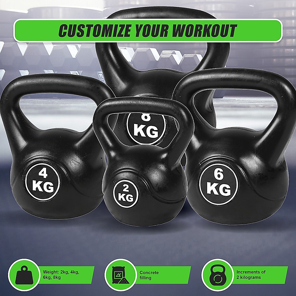 - Four Kettlebell weights (2kg, 4kg, 6kg, 8kg)