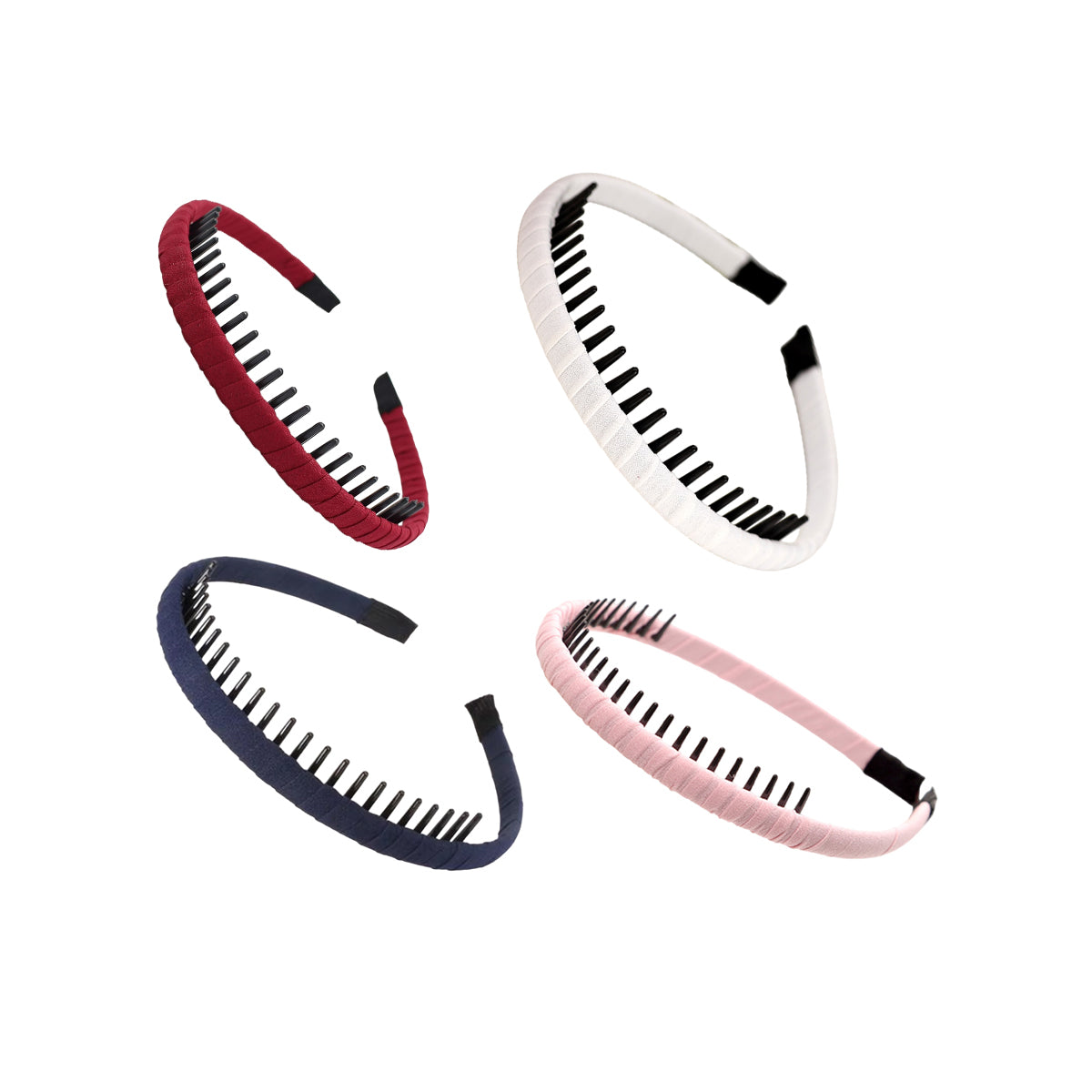 Enhance your hairstyle with this set of four headbands, each designed with teeth to keep your hair in place all day long. These non-slip headbands are wrapped in a soft fabric, offering a comfortable fit and a stylish look. Perfect for daily wear, exercise, or special occasions, they are suitable for various hair types and can be used to control broken hair, secure bangs, or simply add a fashionable touch to your outfit.