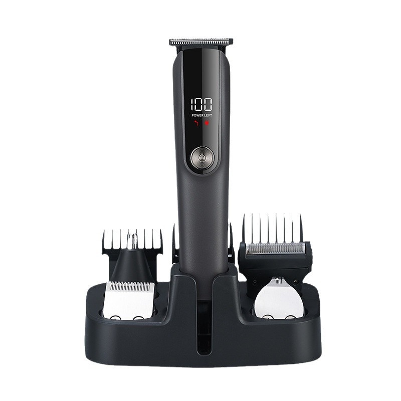 Achieve a complete grooming experience with our versatile 5-in-1 Professional Men’s Grooming Kit. This all-in-one set is designed for the whole family, featuring multiple interchangeable heads for hair clipping, beard trimming, precision detailing, nose/ear hair trimming, and body grooming/shaving. The main unit boasts a clear LED display showing “POWER LEFT” percentage, ensuring you always know your battery status. With convenient Type-C USB charging, it can be used corded or cordless. The detachable blade design allows for easy head swapping and cleaning. This comprehensive kit includes the main grooming device, various trimmer heads, multiple guide combs (3mm, 6mm, 9mm, 12mm), a styling comb, cleaning brush, lubricating oil, a USB Type-C charging cable, and a convenient storage and charging dock. Perfect for maintaining your style with precision and ease.