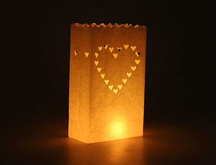 50 Pack White Heart Luminary Paper Candle Tea Light Lantern Bags Garden Wedding Anniversary Birthday Night Decorations Evening Party
