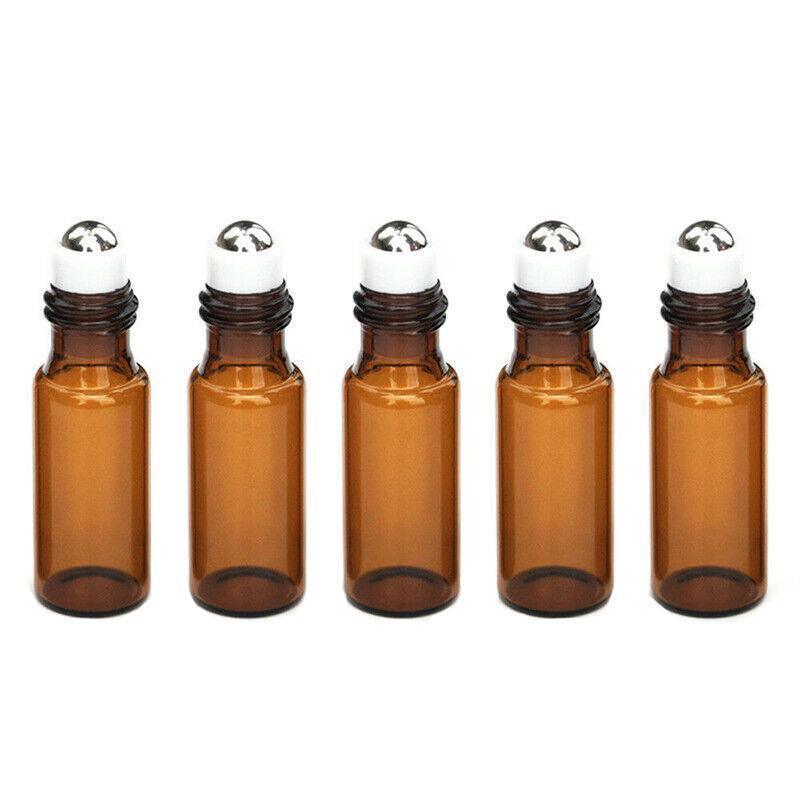 5ml Roller Rollerball Perfume Essential Oil Roll On Ball Amber Glass Bottle – 10PCS