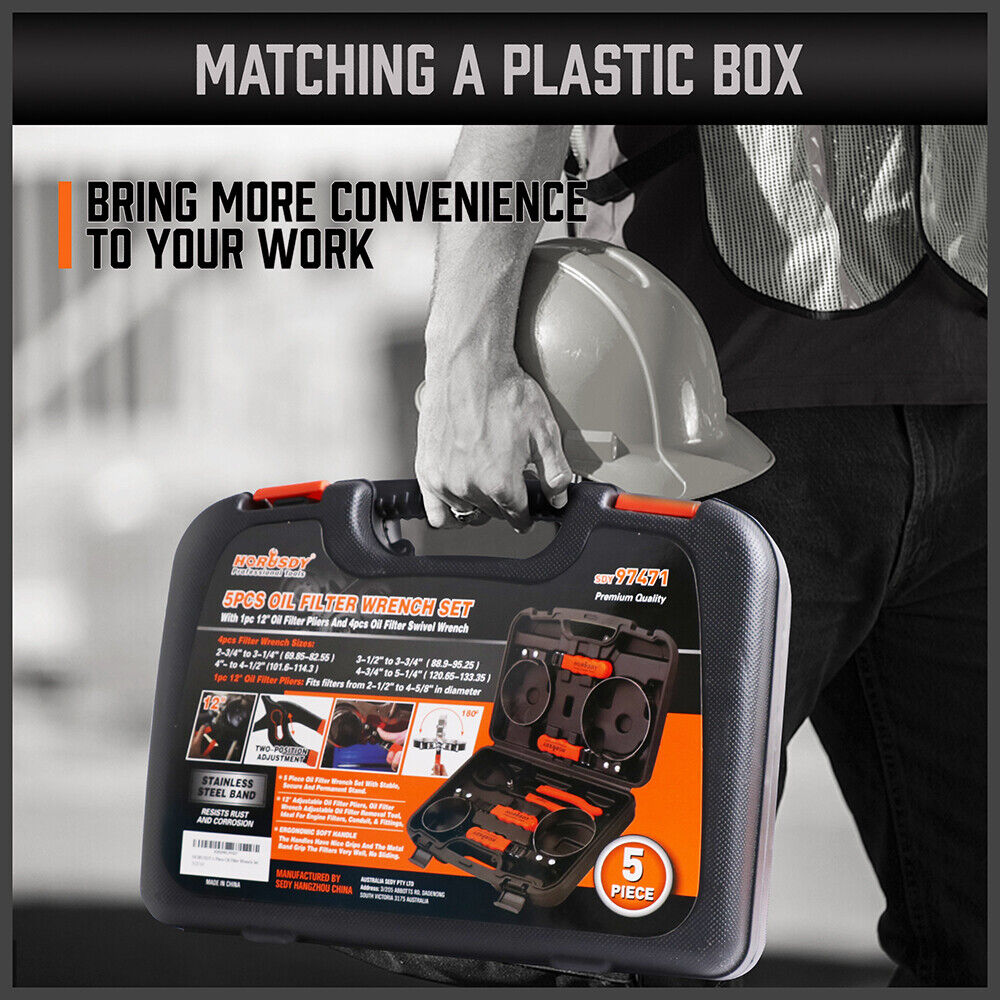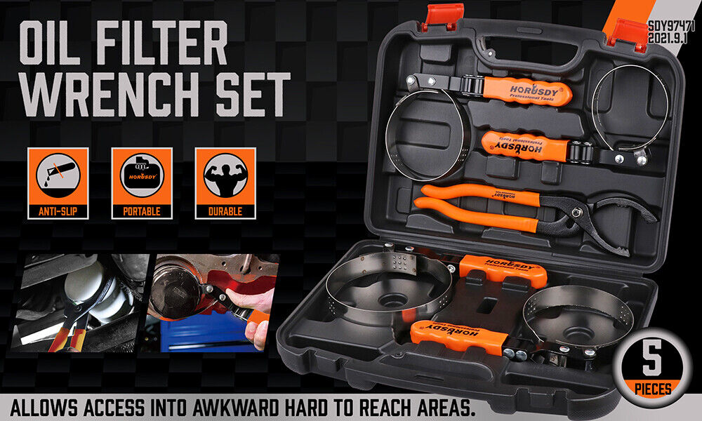 5Pc Oil Filter Wrench Set Swivel Grip Steel Belt Spanner Universal Filter Remove