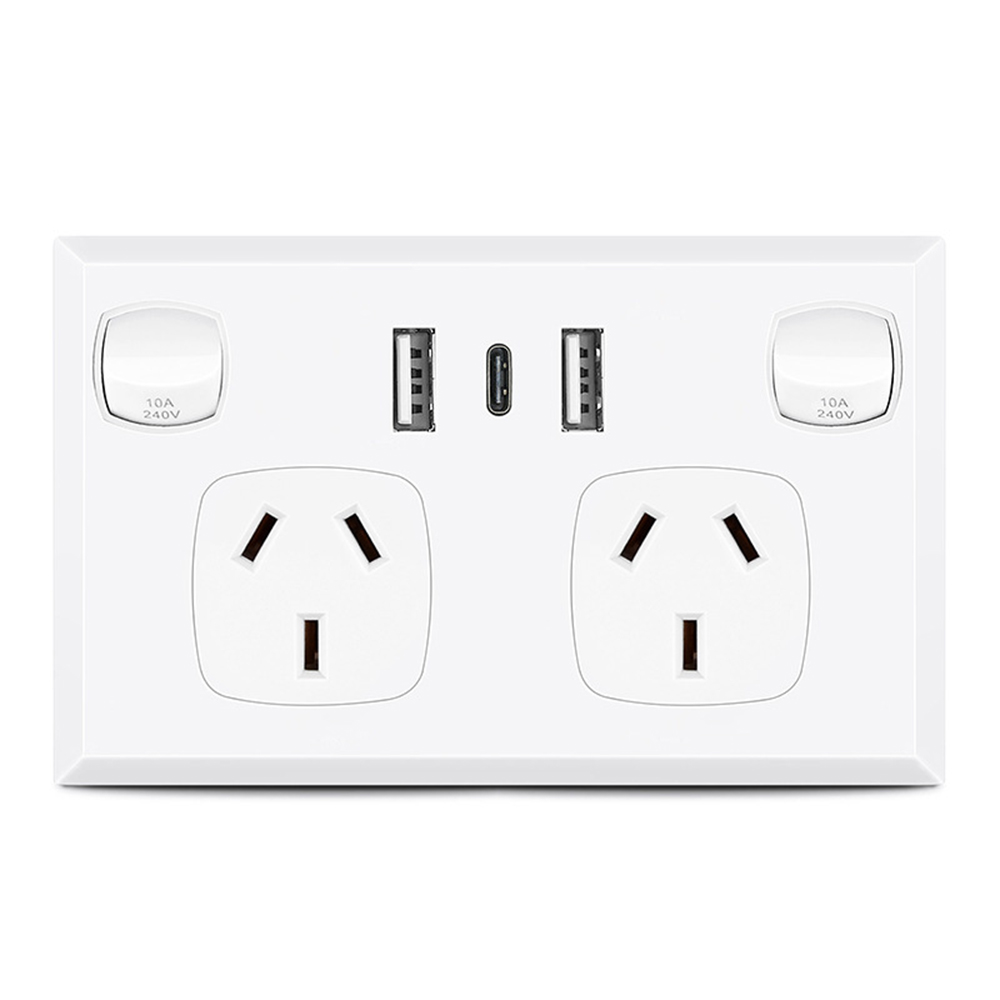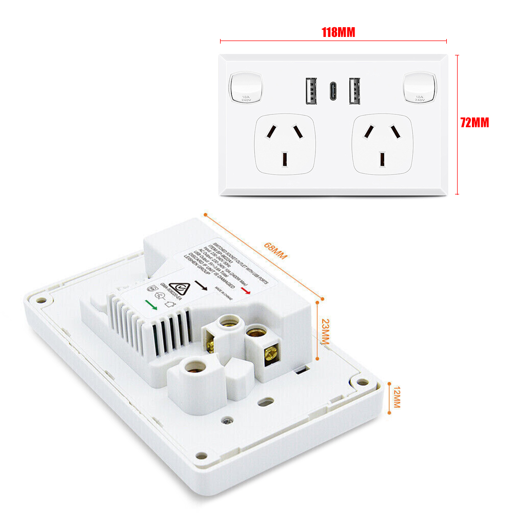5PCS Double Power Point Dual USB+Type-C GPO Fast Charge 3.6 amp Wall Outlet