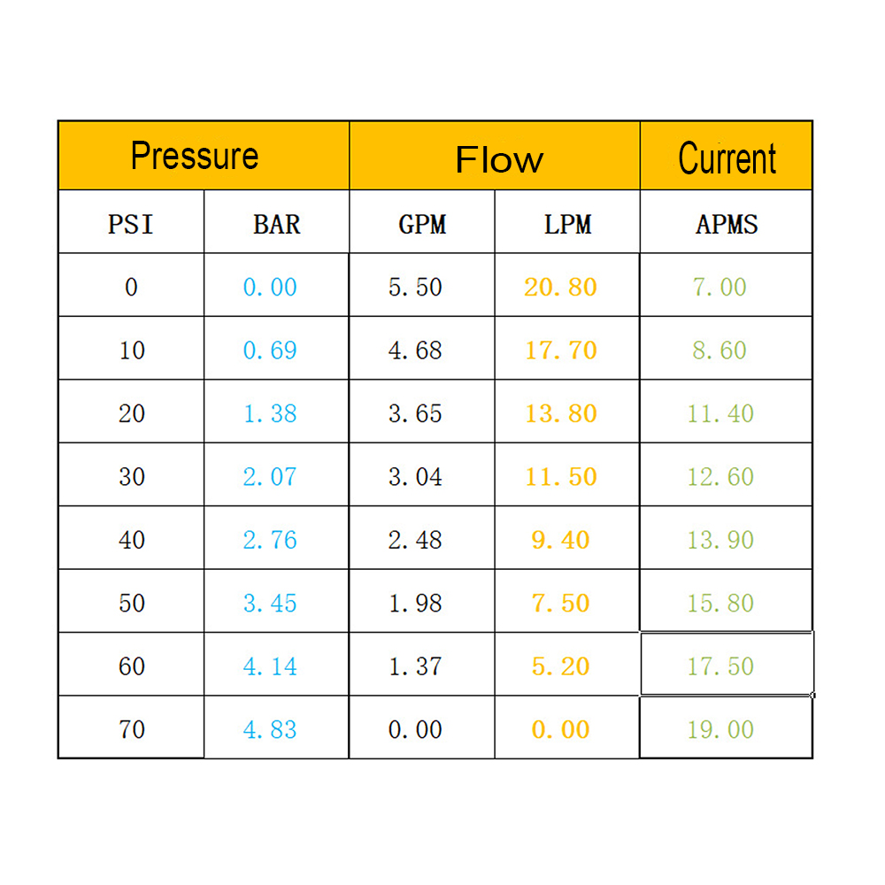 Shut-off Pressure: 75 PSI/ 5.1 BAR