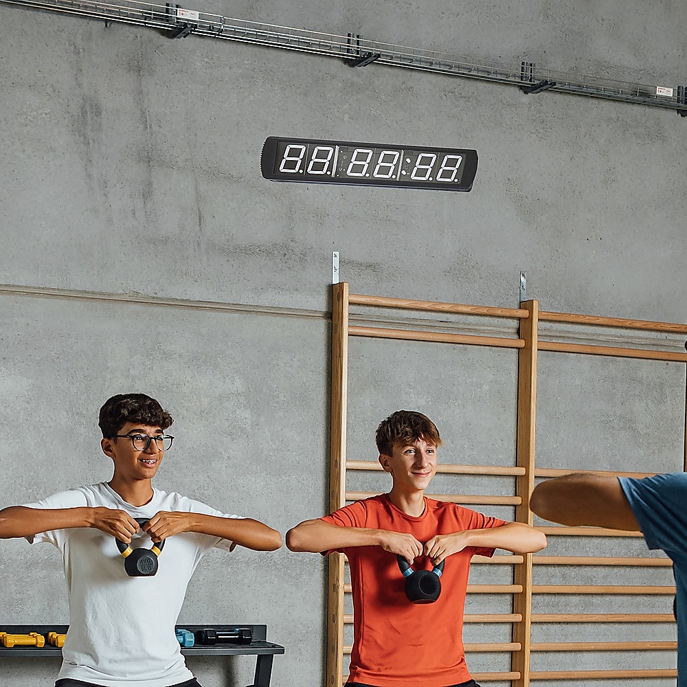 This digital timer boasts extremely large brightly lit digits; the display itself is 650mm long and 120mm wide. The entire unit is 730mm long, 160mm wide and 40mm thick.