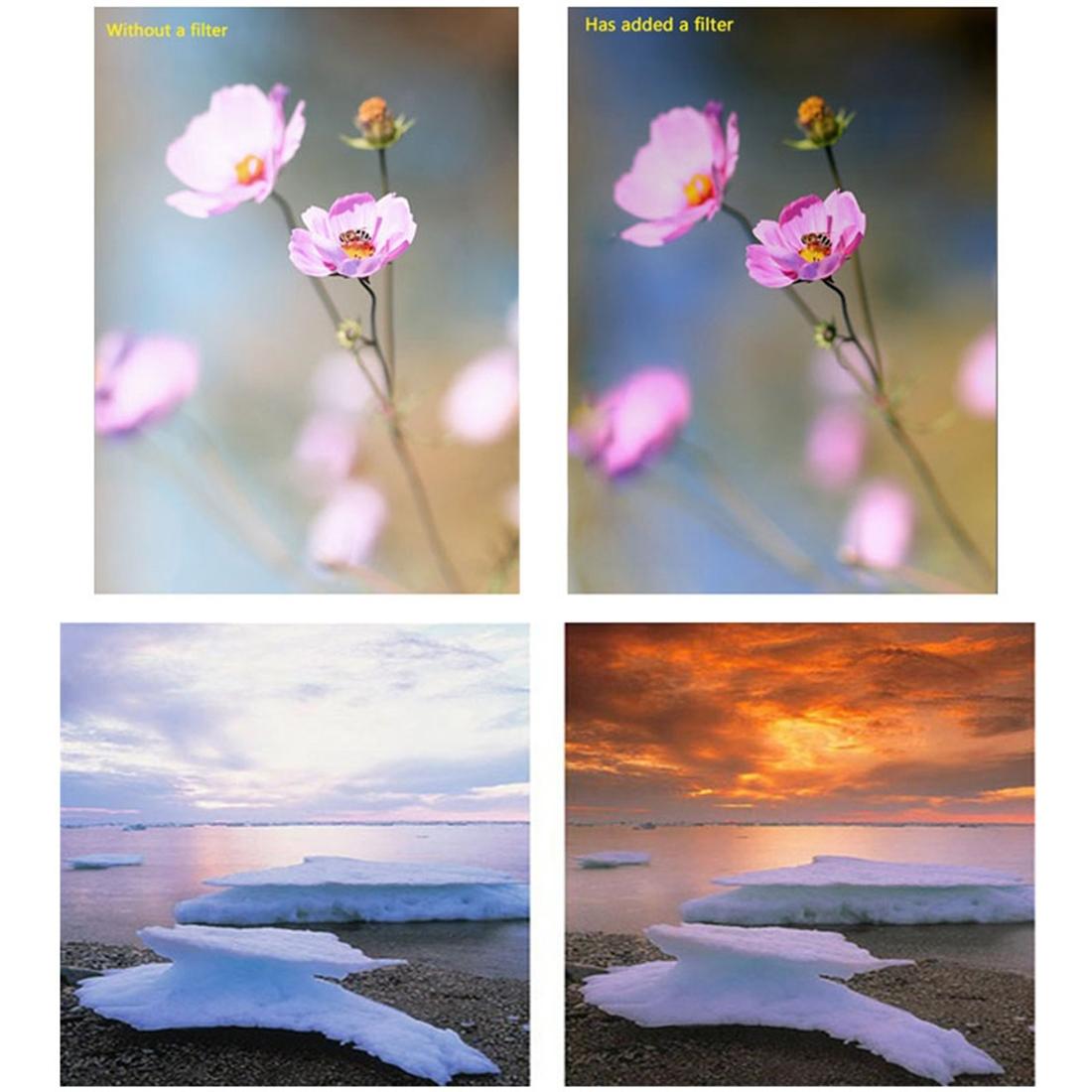 • The filter could limit the reflection from non-metal surface such as water and glass windows. Using the filters, the colours shall become brighter and clearer and the contrast shall be strengthened.