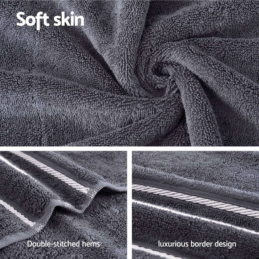 Indulge in spa-like luxury at home with this premium 6-piece bath towel set. Woven from 100% cotton with a plush 650gsm weight, these towels offer exceptional comfort and breathability. Wrap yourself in softness after a relaxing bath or shower, with the double-stitched edges ensuring long-lasting durability. The luxurious border design adds a touch of elegance to your bathroom décor, while the quick-drying and highly absorbent materials make these towels practical for everyday use. Toss them in the washing machine for effortless cleaning, and experience the difference quality cotton can make in your daily routine.