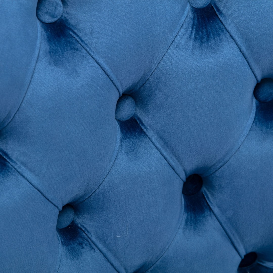 6x Velvet Dining Chairs Upholstered Tufted Kithcen Chair with Solid Wood Legs Stud Trim and Ring-Blue