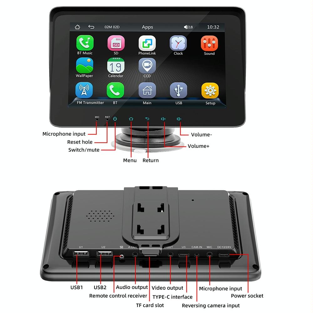 7 Inch Car Mp5 Player W / Carplay & Android Auto – Black