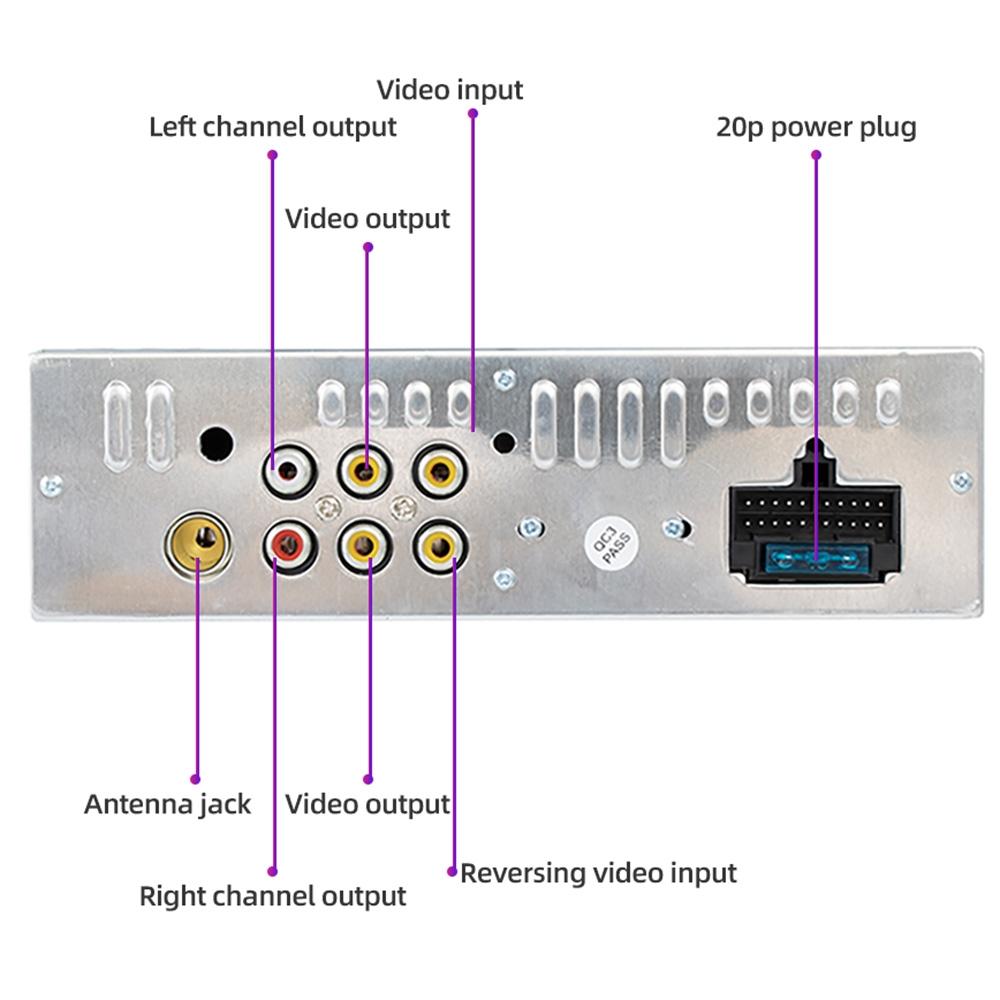 • Rca Terminal: 2 Audio Outputs, 1 Reversing Input, 1 Video Input, 2 Video Output