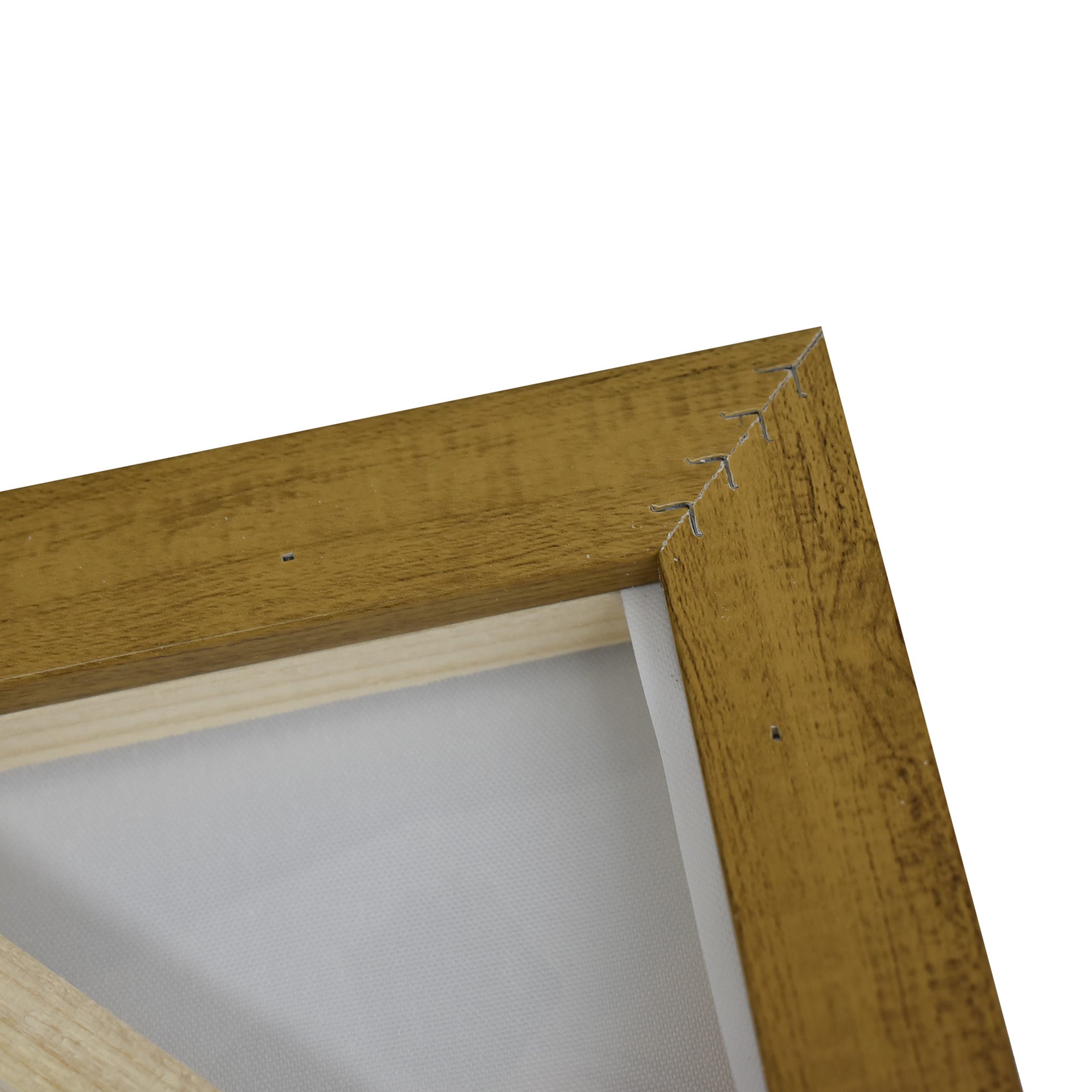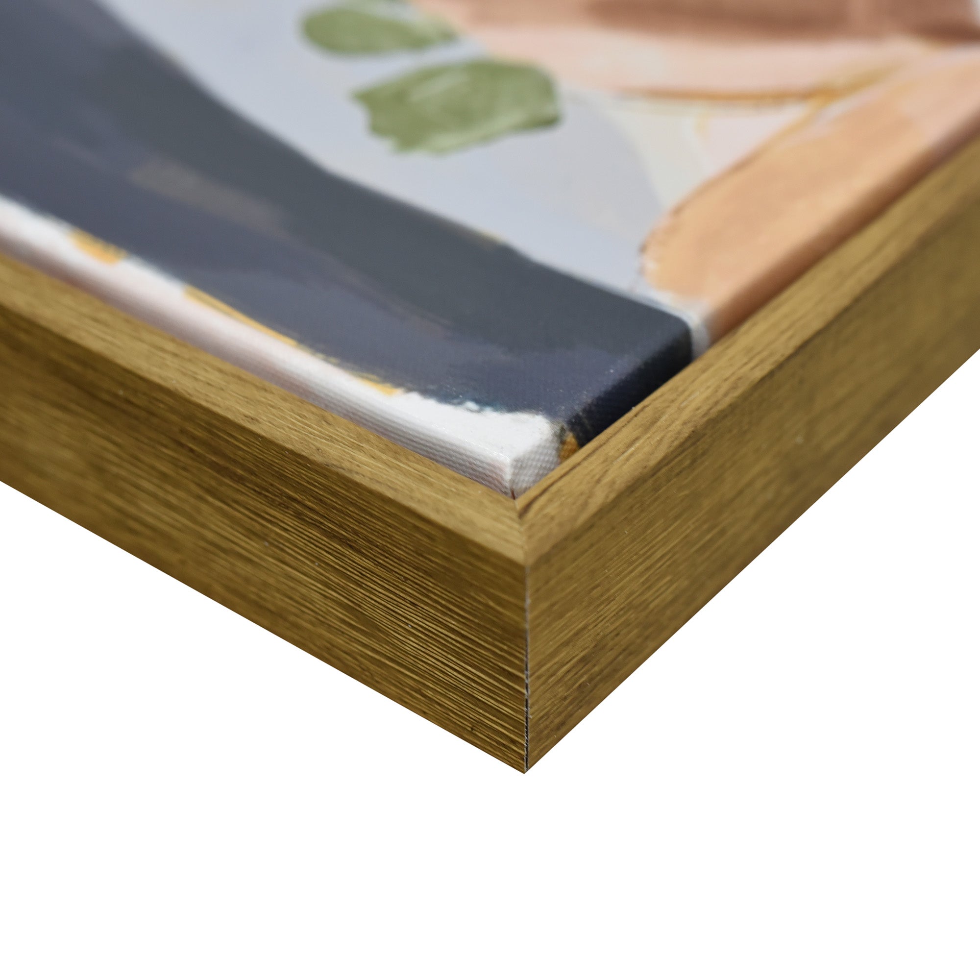 Stretched and gallery wrapped around a wooden stretcher and finished with a floating frame. There is a gap between the frame and print, which creates the floating effect and literally makes the canvas print stand out even more.