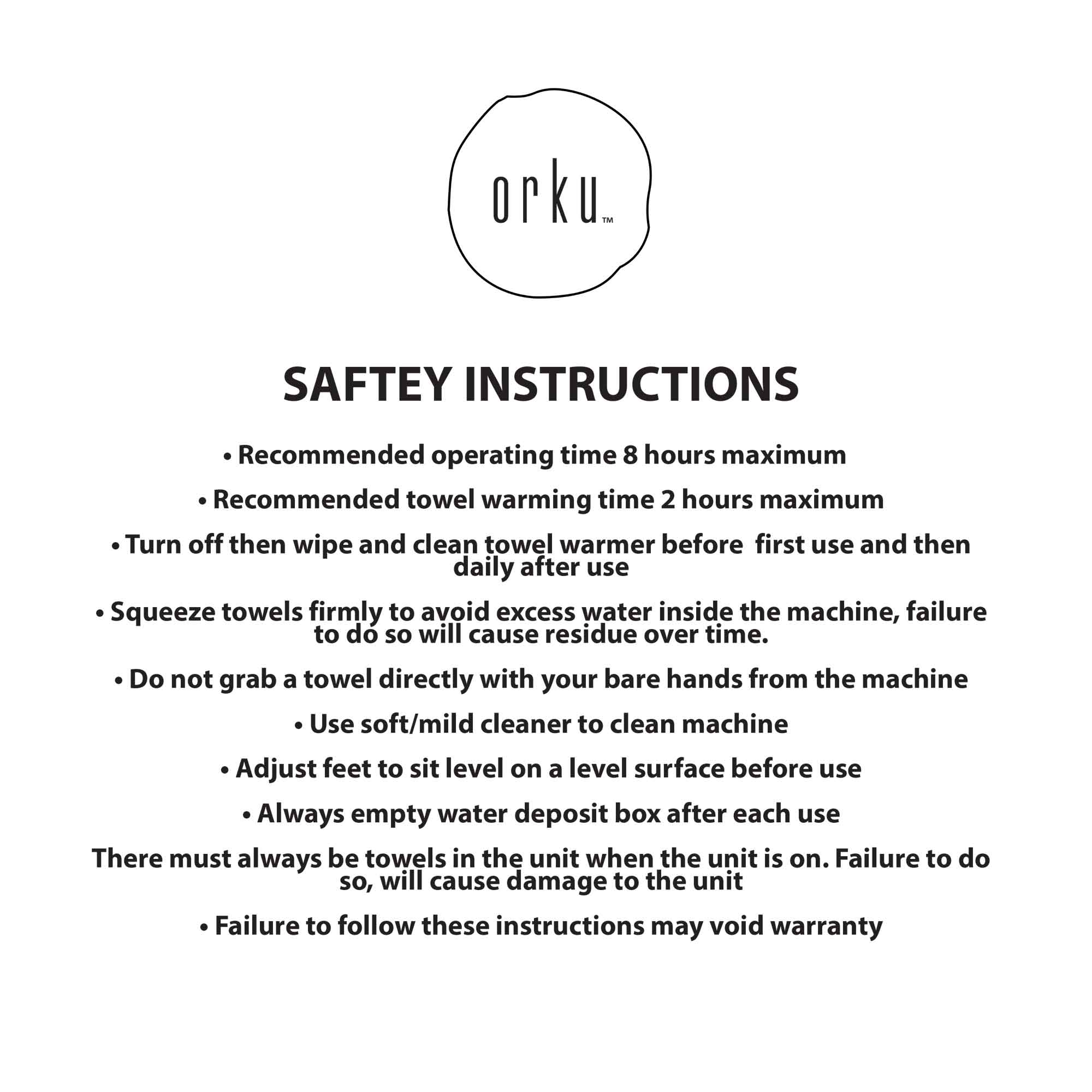 • Before your first use, please use a slightly wet towel to clean the towel warmer before first time using the machine (new towel warmers come with iron powder on the seals and inside the machine for protection)