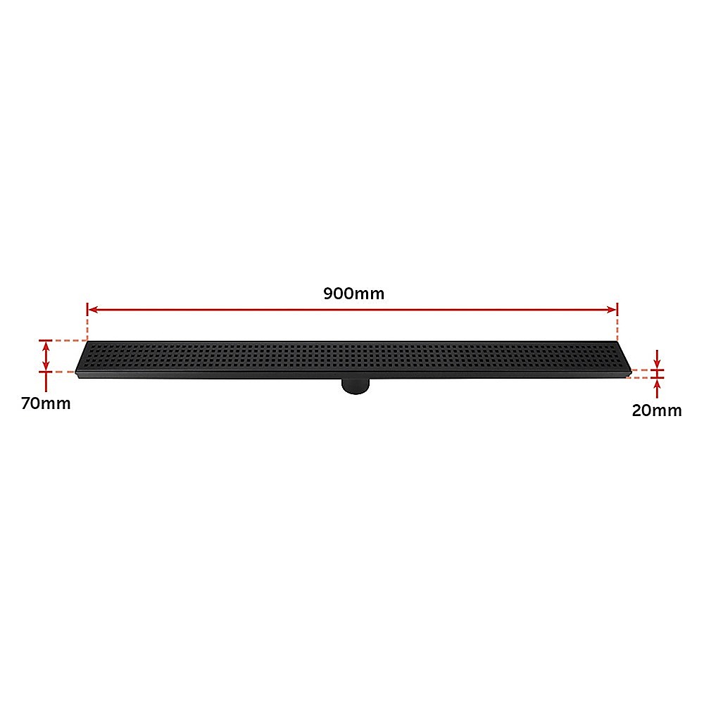 900mm Bathroom Shower Black Grate Drain w/Centre outlet Floor Waste Square Pattern