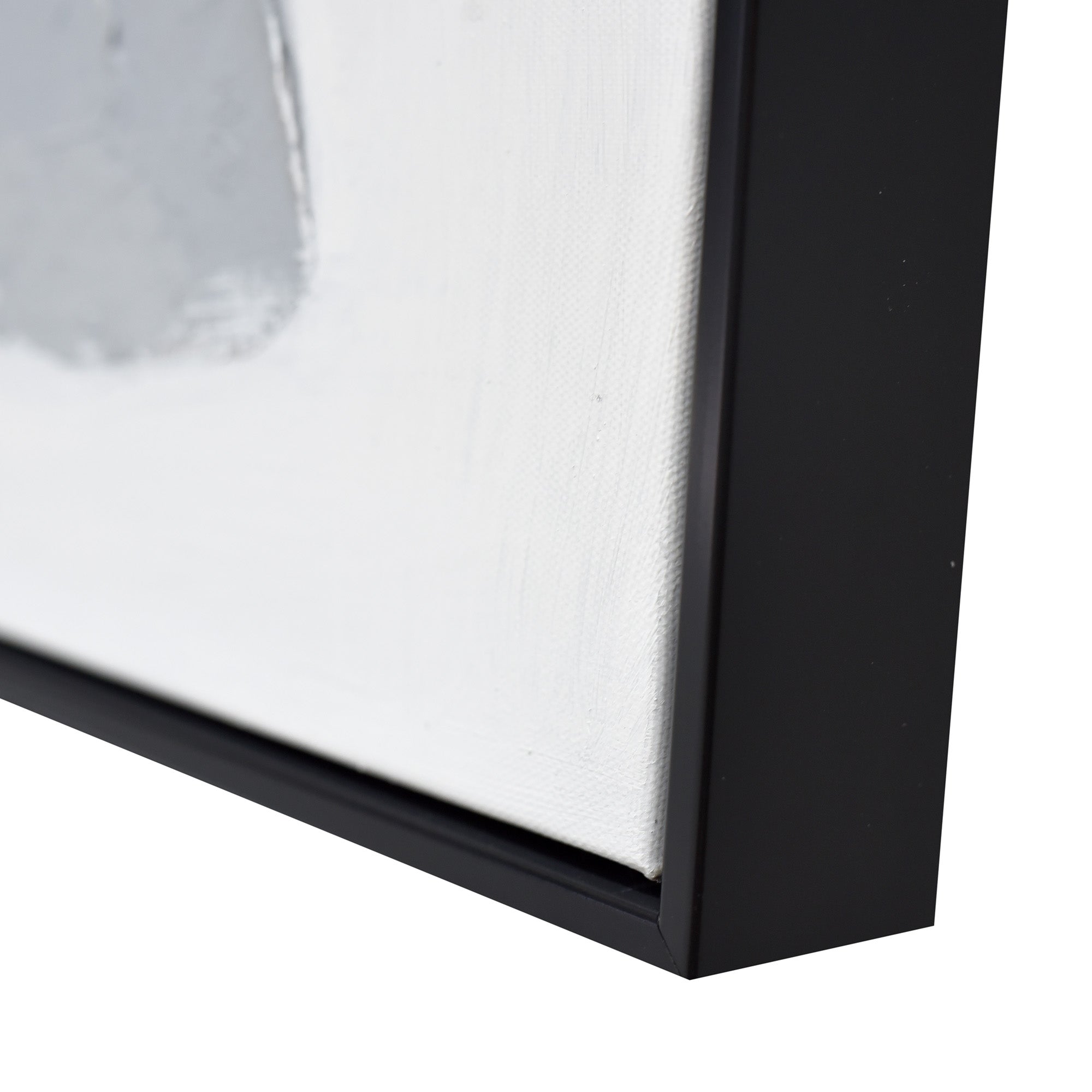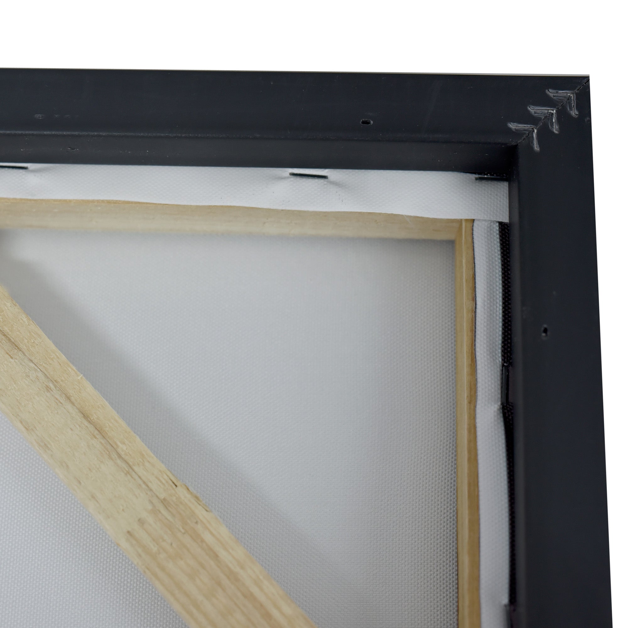 Stretched and gallery wrapped around a wooden stretcher and finished with a floating frame. There is a gap between the frame and print, which creates the floating effect and literally makes the canvas print stand out even more.