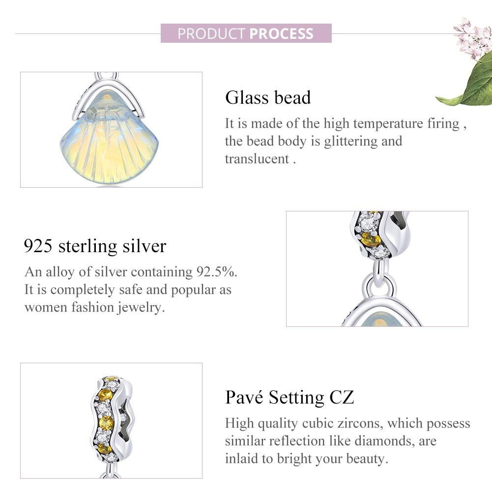925 Sterling Silver Iridescent Shell Pendant For Diy Bracelet Or Necklace
