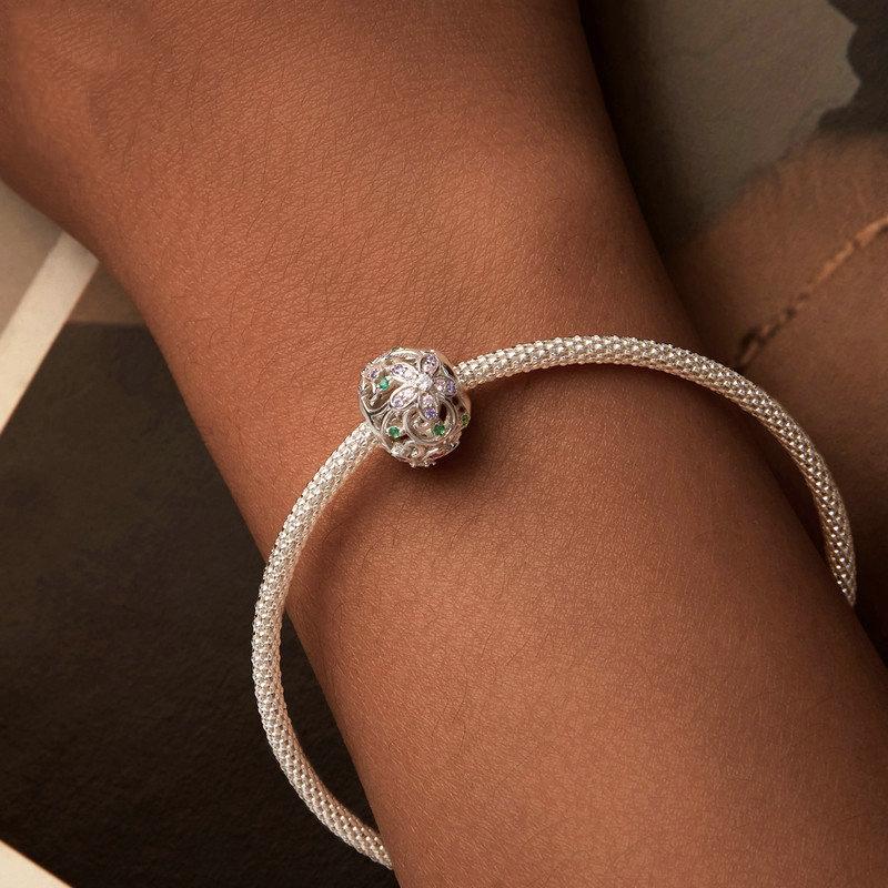 • 1 x 925 Sterling Silver Platinum Plated Hollow Flower Vine Diy Beads