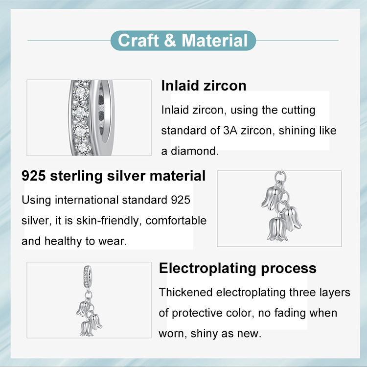 • 1 x 925 Sterling Silver Platinum Plated Lily Of The Valley Bracelet Pendant