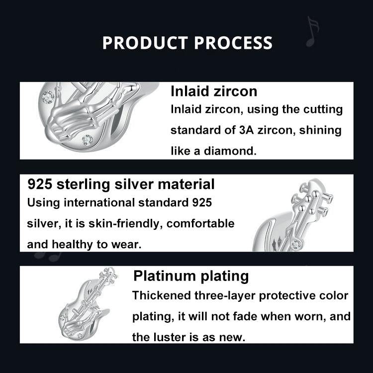 • 1 x 925 Sterling Silver Platinum Plated Skull Bass Pendant