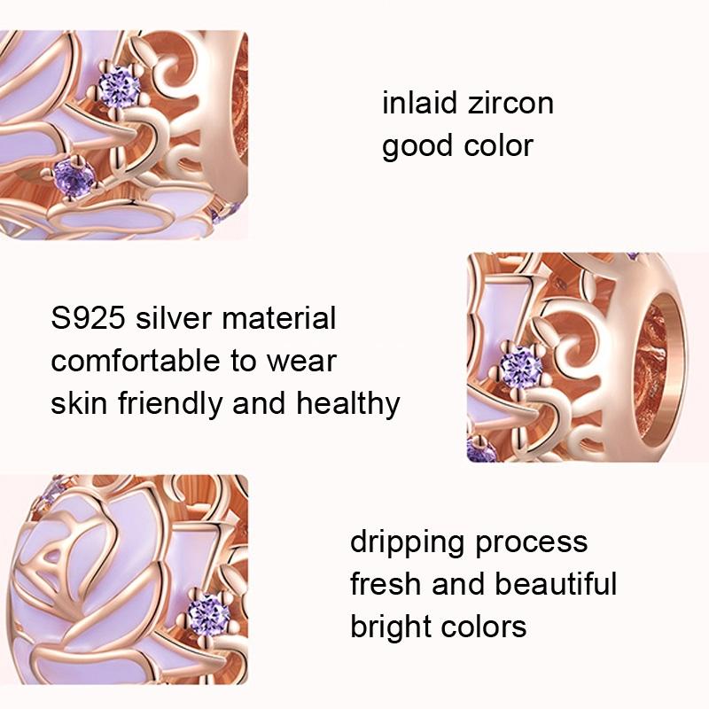 925 Sterling Silver Purple Rose Beads For Diy Accessories