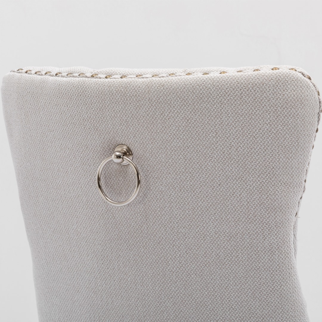 AADEN Modern Elegant Button-Tufted Upholstered Fabric with Studs Trim and Wooden legs Dining Side Chair-Beige
