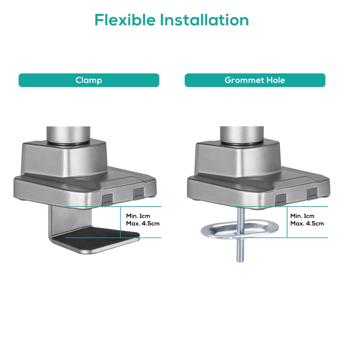 - Two Mounting Options for Customizable Setup:This activiva monitor arm can be mounted using either the included desk clamp or grommet, giving you the flexibility to choose the most suitable option for your setup.