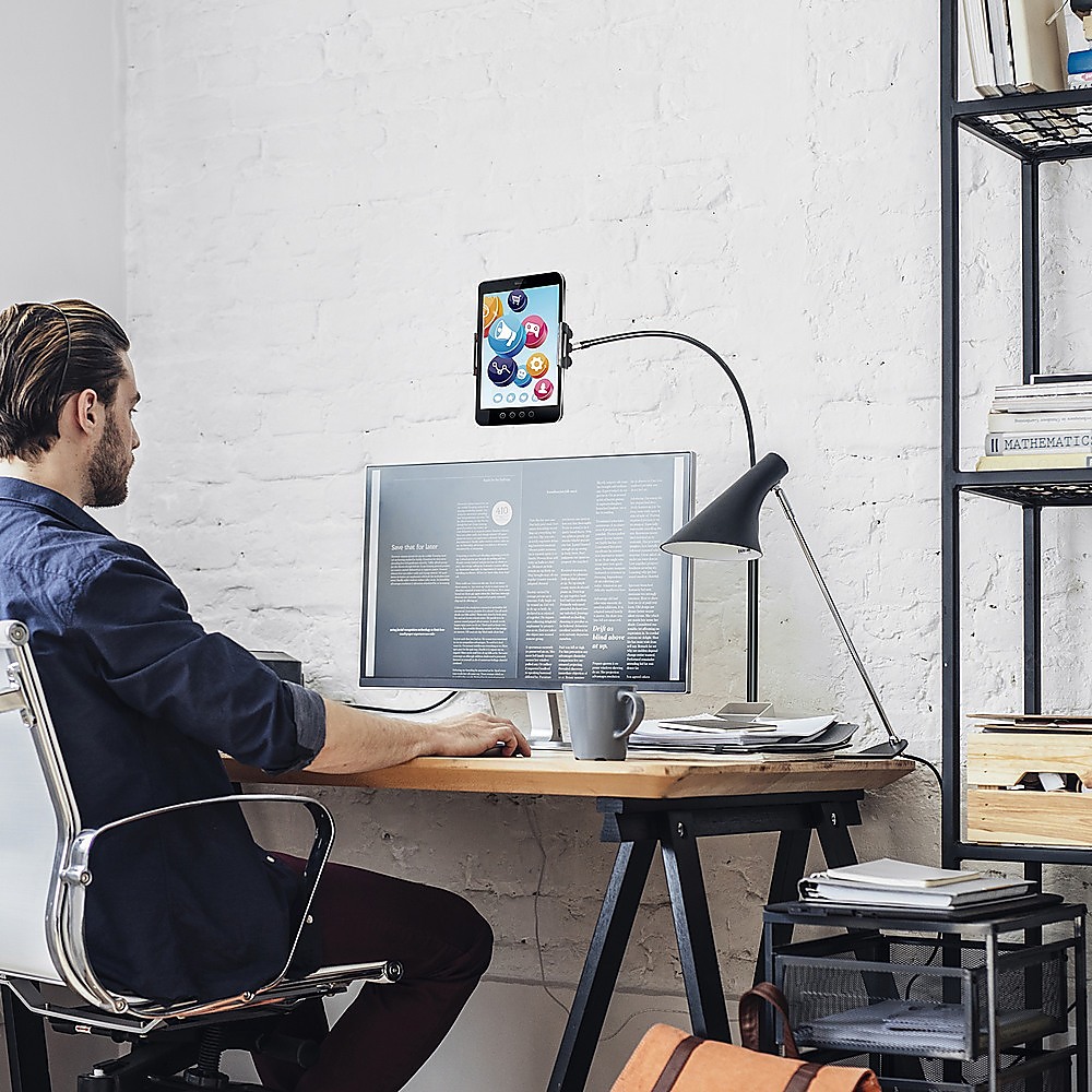 There are even more uses for this versatile stand. Use it to conduct Zoom calls while standing or to record music or other videos hands-free, or watch YouTube recipe videos while you follow the video chef's lead and recreate their gourmet dishes in your own kitchen. Adjust it at whatever angle or height feels comfortable to you it's your choice. Get more use out of your mobile devices with this sturdy, convenient holder and stand. Order yours today!
