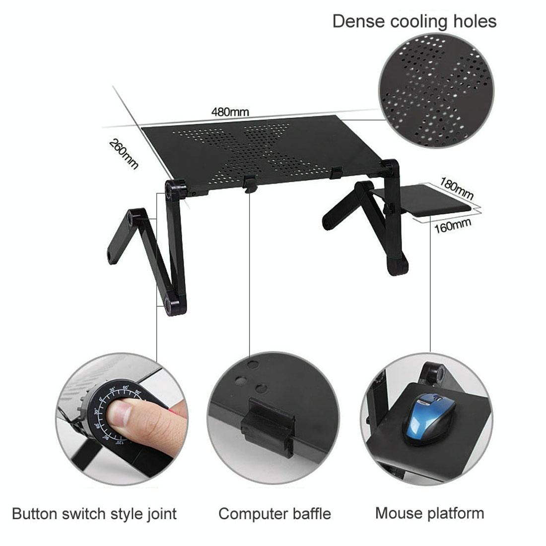 • 360-degree foldable and fully adjustable laptop table desk