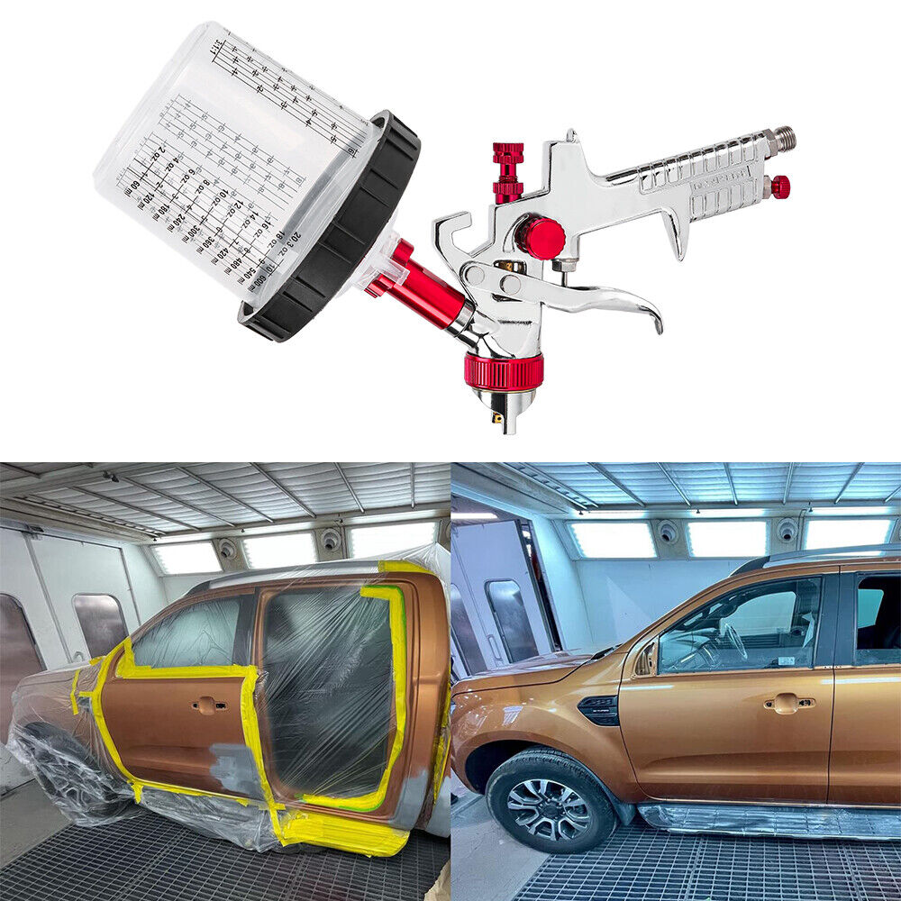 High efficient: Unlike conventional paint cup systems, our paint cups gives you everything you need for an all-in-one solution for measuring mixing filtering and spraying paint materials. They can be replaced with spare cups at any time, which reduces cleaning efforts and the consumption of cleaning agents.