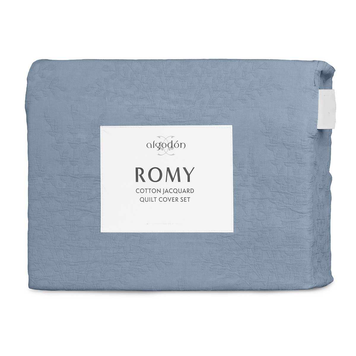 Algodon Romy Blue Cotton Jacquard Quilt Cover Set King