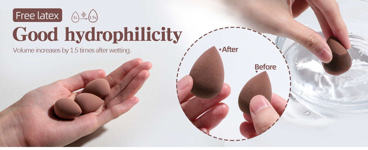 • Versatile Makeup Sponges: Comes with latex-free, hydrophilic makeup sponges that expand when wet. Perfect for both wet use (with liquid foundation) and dry use (with powdery cosmetics), ensuring a smooth, even blend.