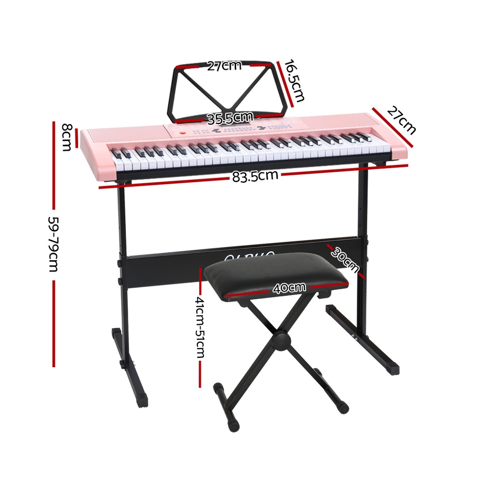 Alpha 61 Keys Electronic Piano Keyboard Digital Electric w/ Stand Stool Pink