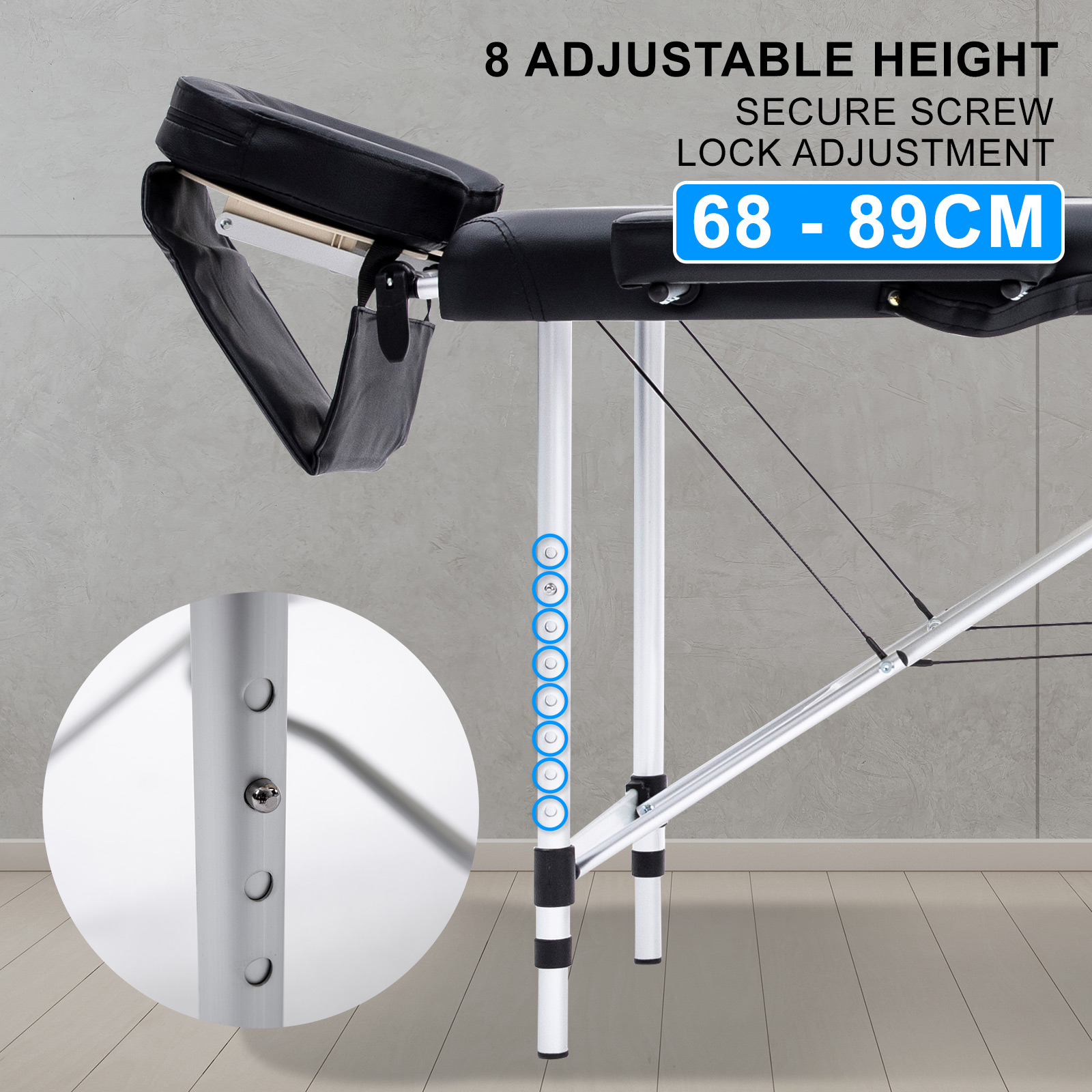 Aluminium Portable Beauty Massage Table Bed 2 Fold 55cm Black