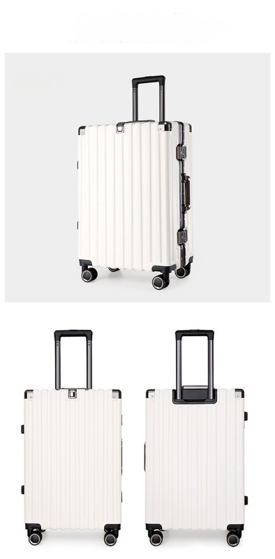 Aluminum Alloy Hard-Shell Suitcase designed for durability and style. This sleek 22-inch spinner luggage in elegant white features an ultra-strong aluminum alloy frame, TSA-approved locks for added security, and 360-degree spinner wheels for smooth maneuverability. Ideal for frequent travelers who prioritize protection and luxury. Travel with confidence and sophistication!