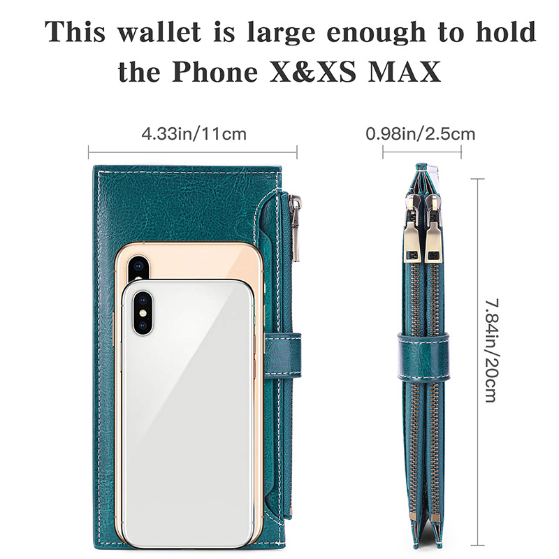 This vintage-inspired wallet is crafted from premium oil wax leather, offering a luxurious look and feel. With an impressive 19 card slots, 2 ID windows, 2 SIM card slots, and 2 zipper pockets, you’ll have plenty of room to store all your essentials. Plus, its RFID blocking technology keeps your cards safe from electronic theft. Large enough to hold your phone, this wallet is the perfect combination of style and functionality.