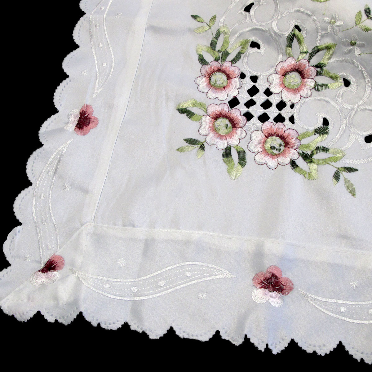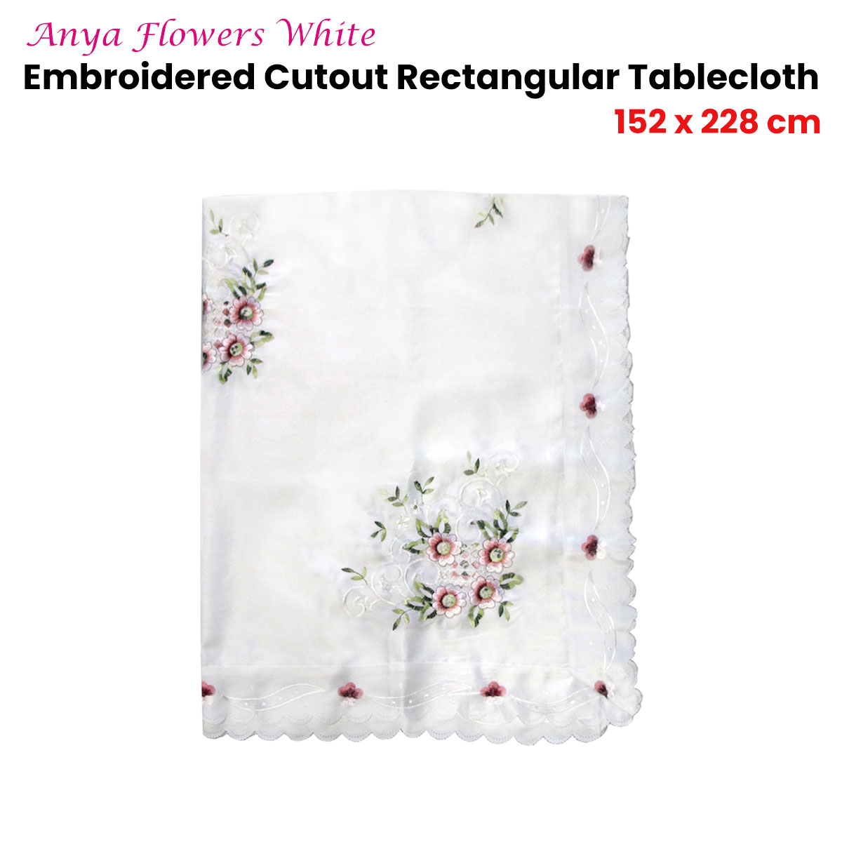 Anya Flowers White Embroidered Cutout Rectangular Tablecloth 152 x 228 cm