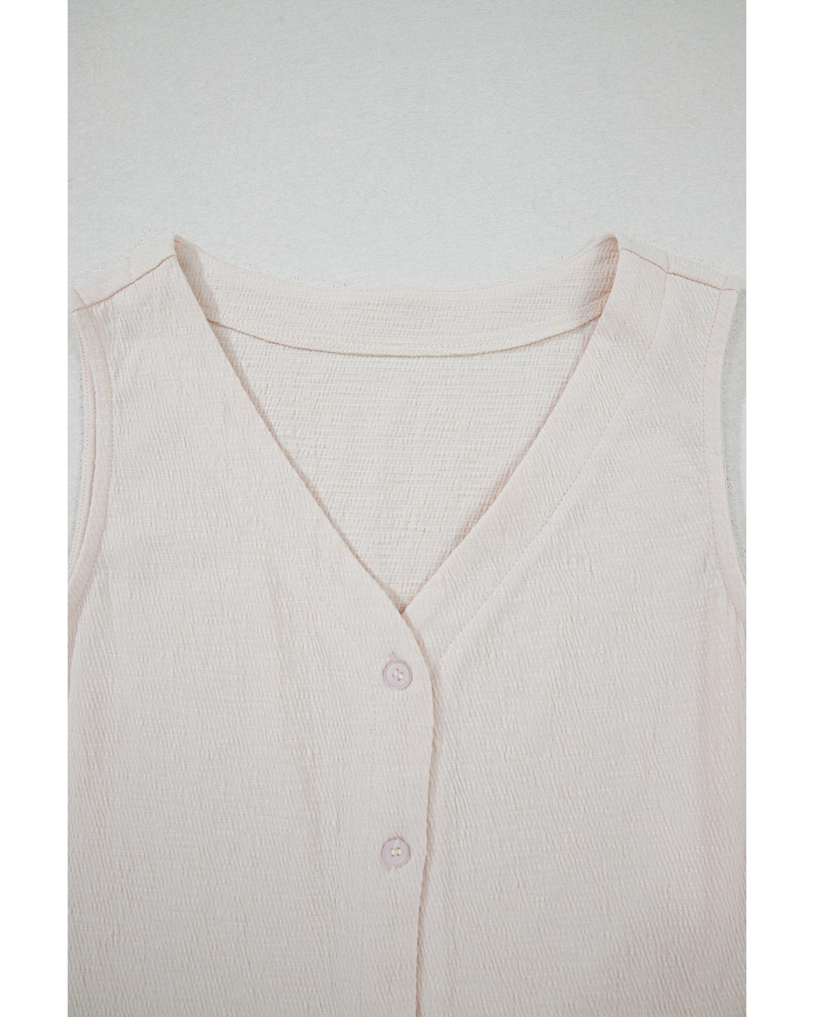Apricot Buttoned V Neck Tank Top and Wide Leg Pants Casual Outfit – XL