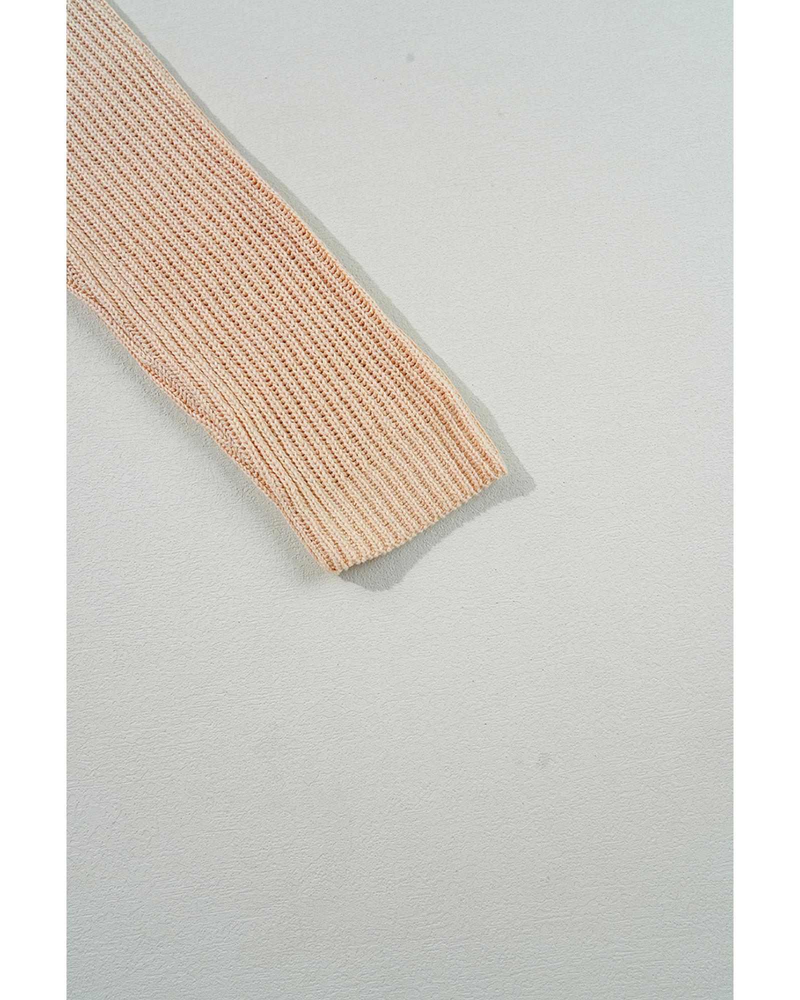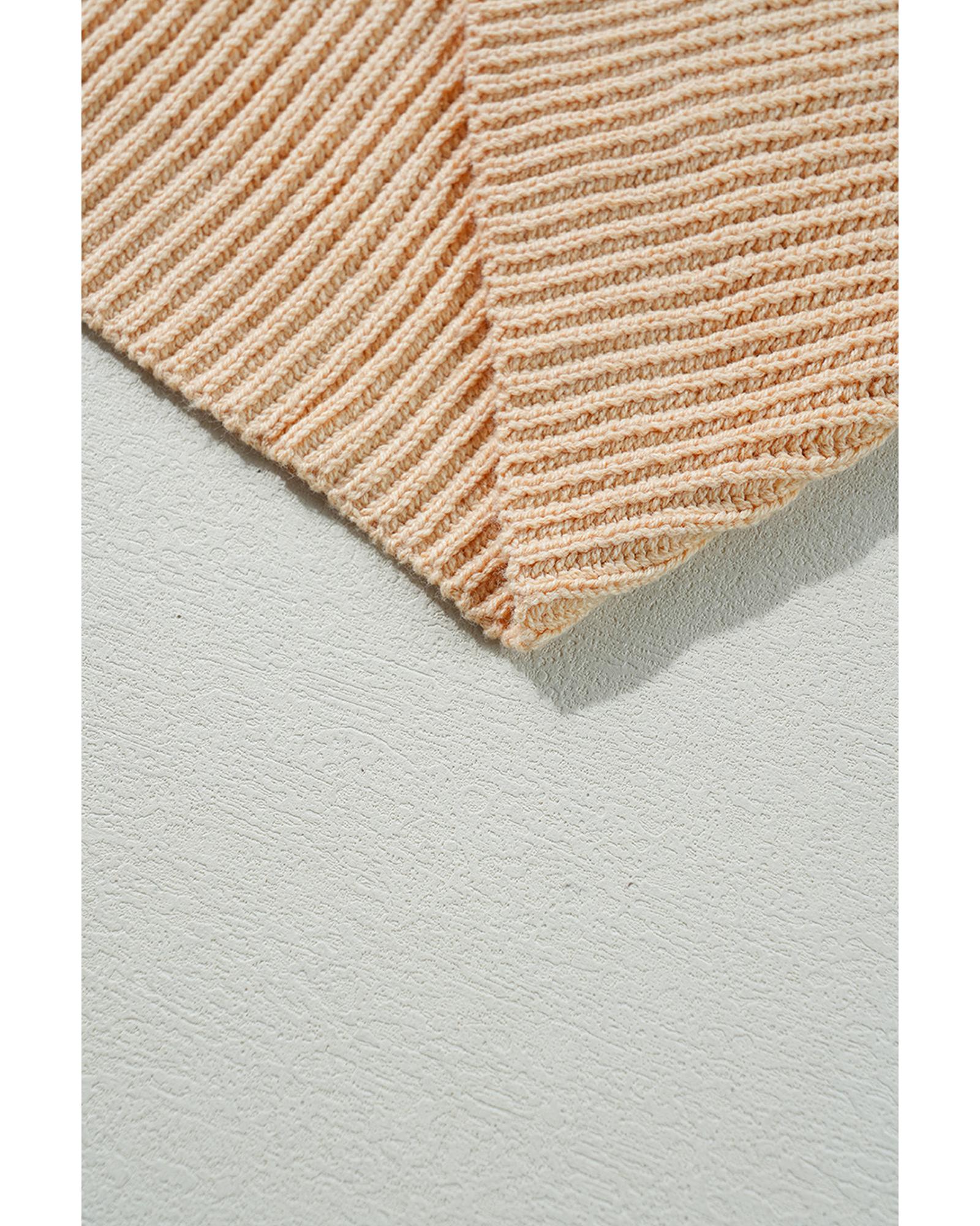 Apricot Cable Knit Drop Shoulder Side Slits Loose Sweater – L