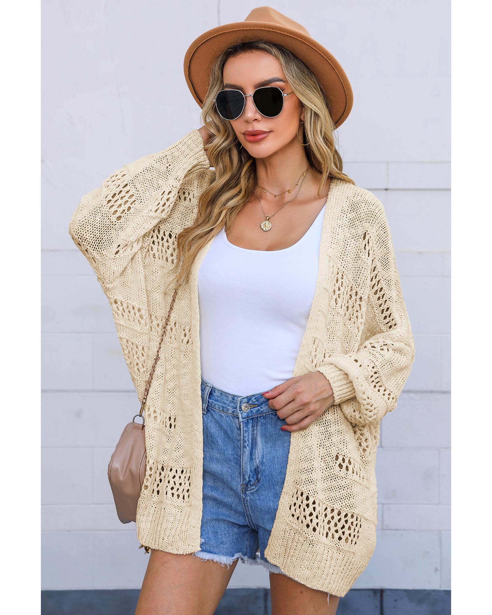 Apricot Casual Hollowed Knit Dolman Sleeve Cardigan – S