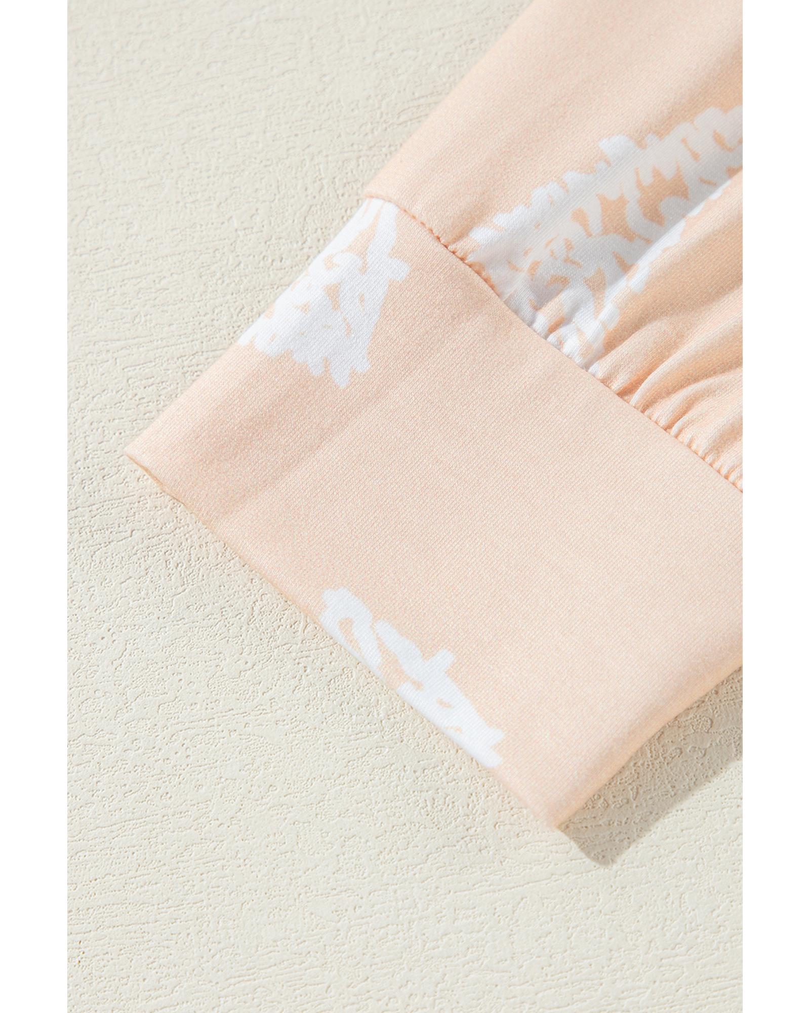 Apricot Christmas Tree Print Loose Fit Two Piece Pajama Set – M