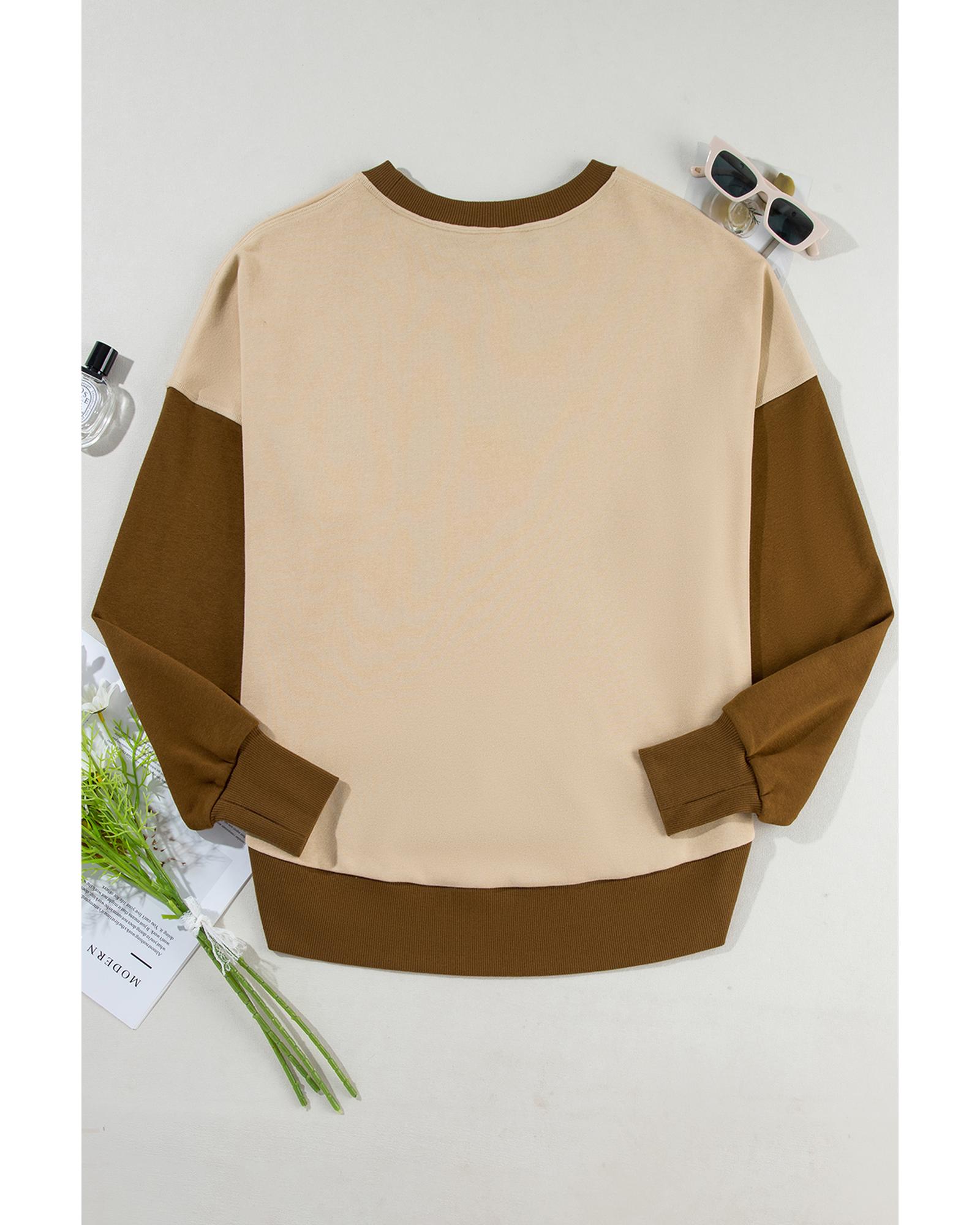 Apricot Color Block Thumbhole Sleeve Drop Shoulder Sweatshirt – S