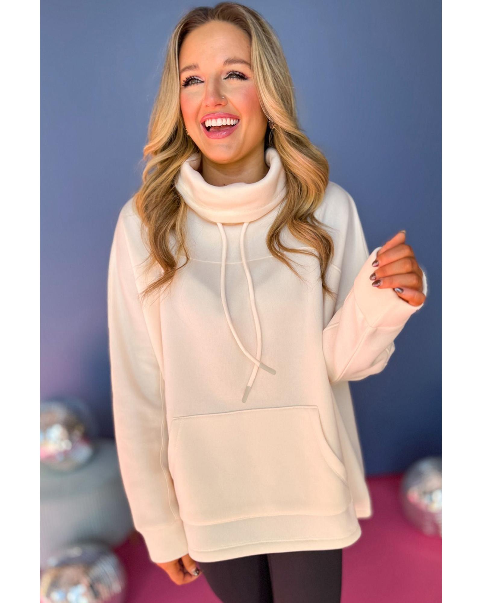 Apricot Drawstring Turtleneck Dolman Sleeve Sweatshirt – S