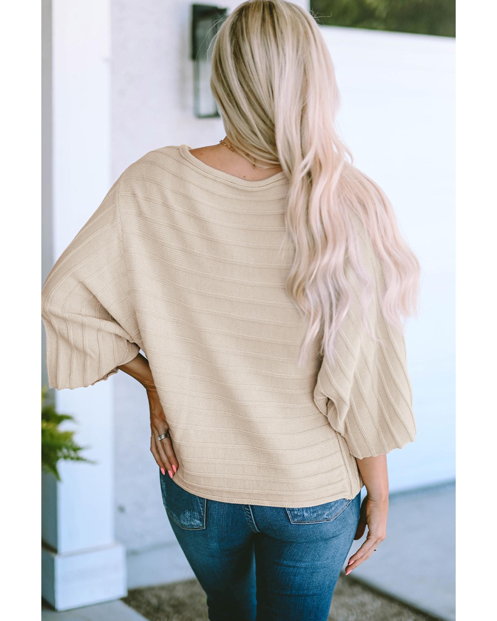 Apricot Exposed Seam Ribbed Knit Dolman Sweater – 2XL