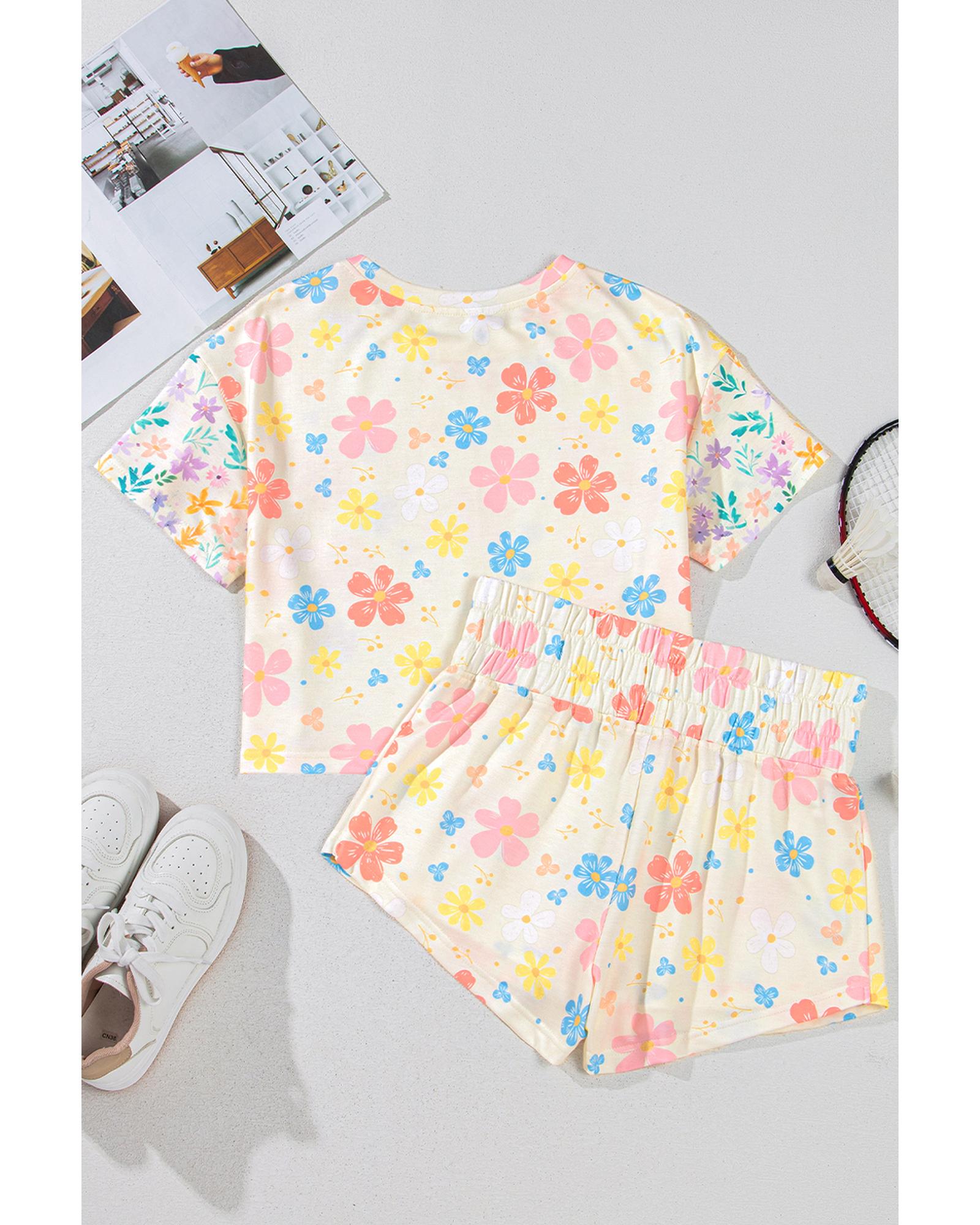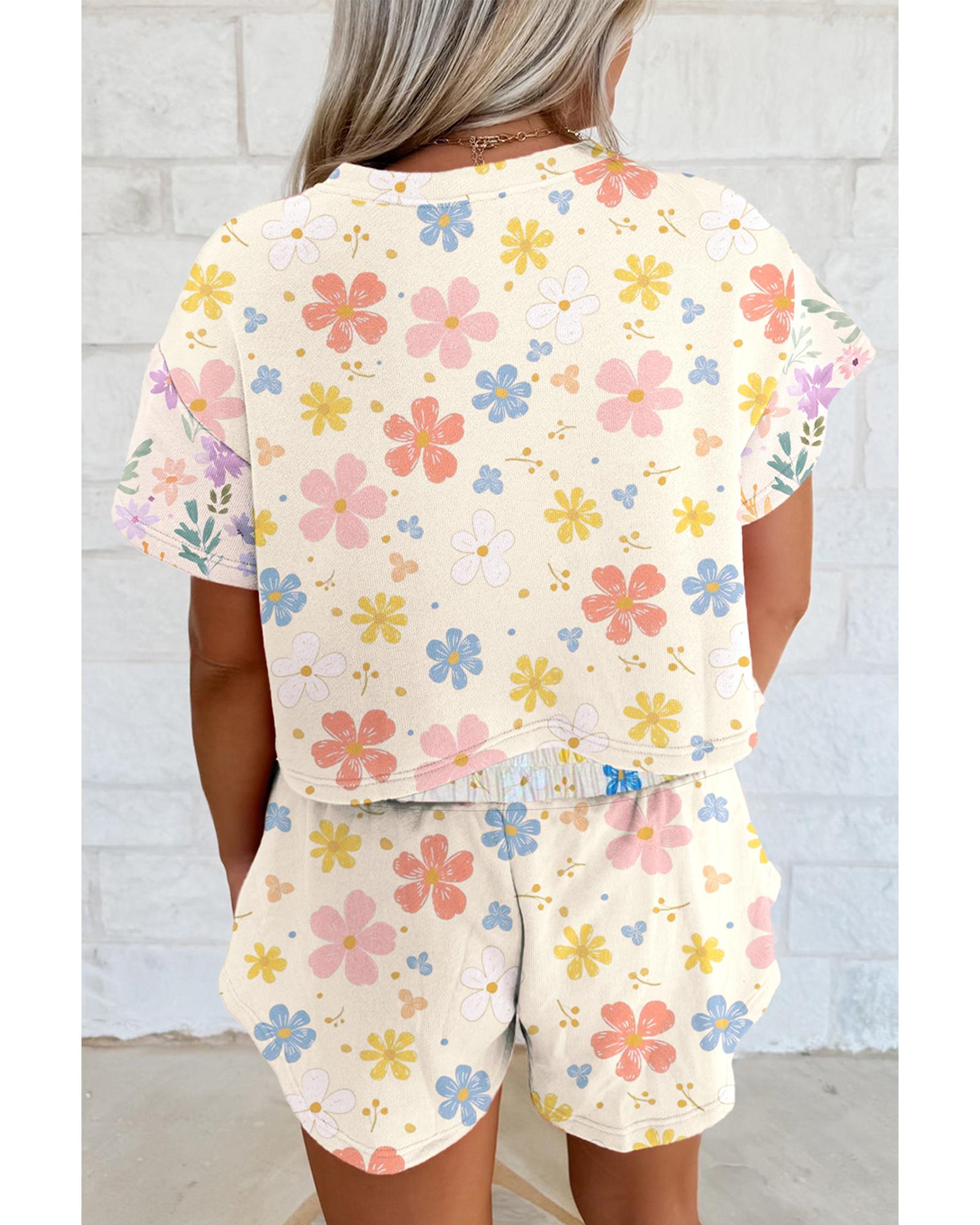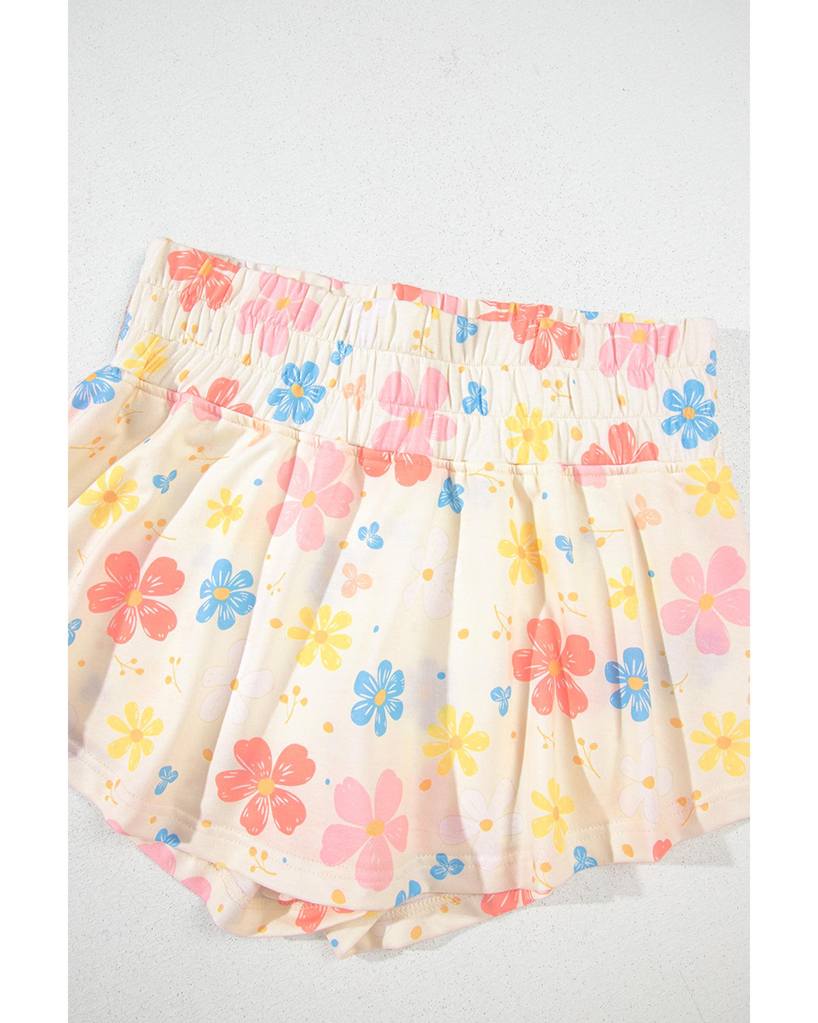 Apricot Floral Print Crop Top Wide Leg Short Set – M